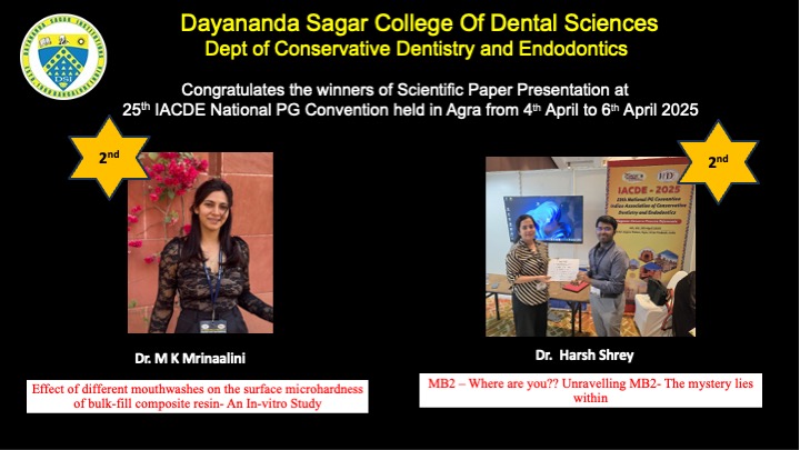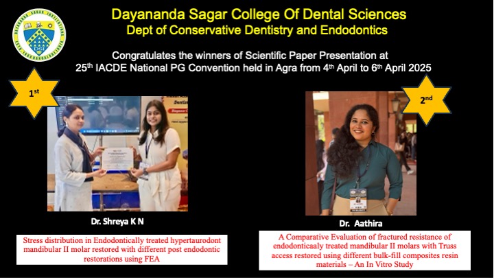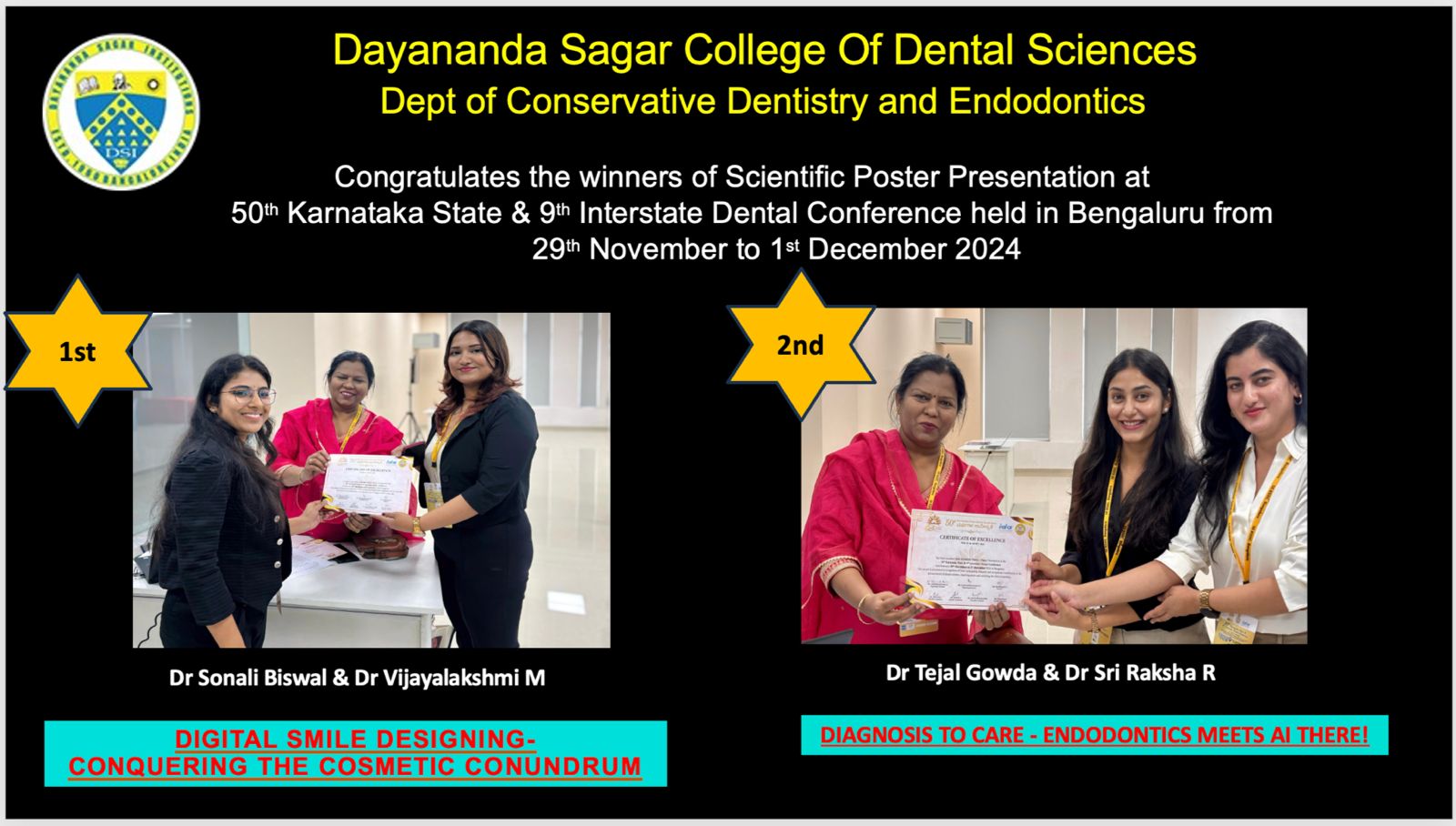 They were guided by Dr.Krishnanand PS, Professor & Head of Department of Oral Pathology, DSCDS & Dr. Vidya MA, Senior Lecturer in Department of Oral pathology, DSCDS. The results of the Poster event are as follows: