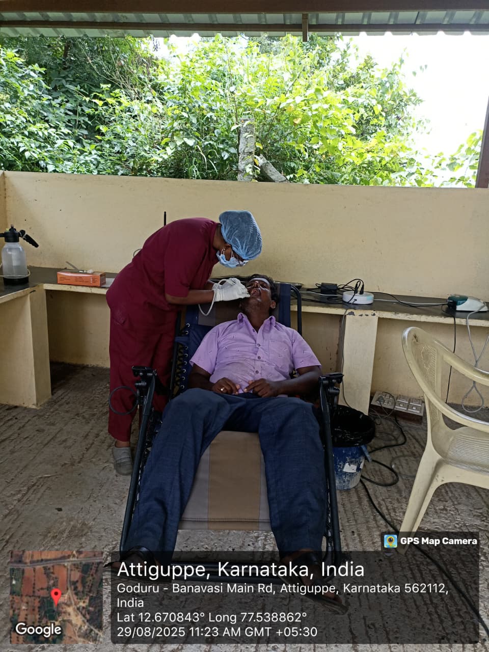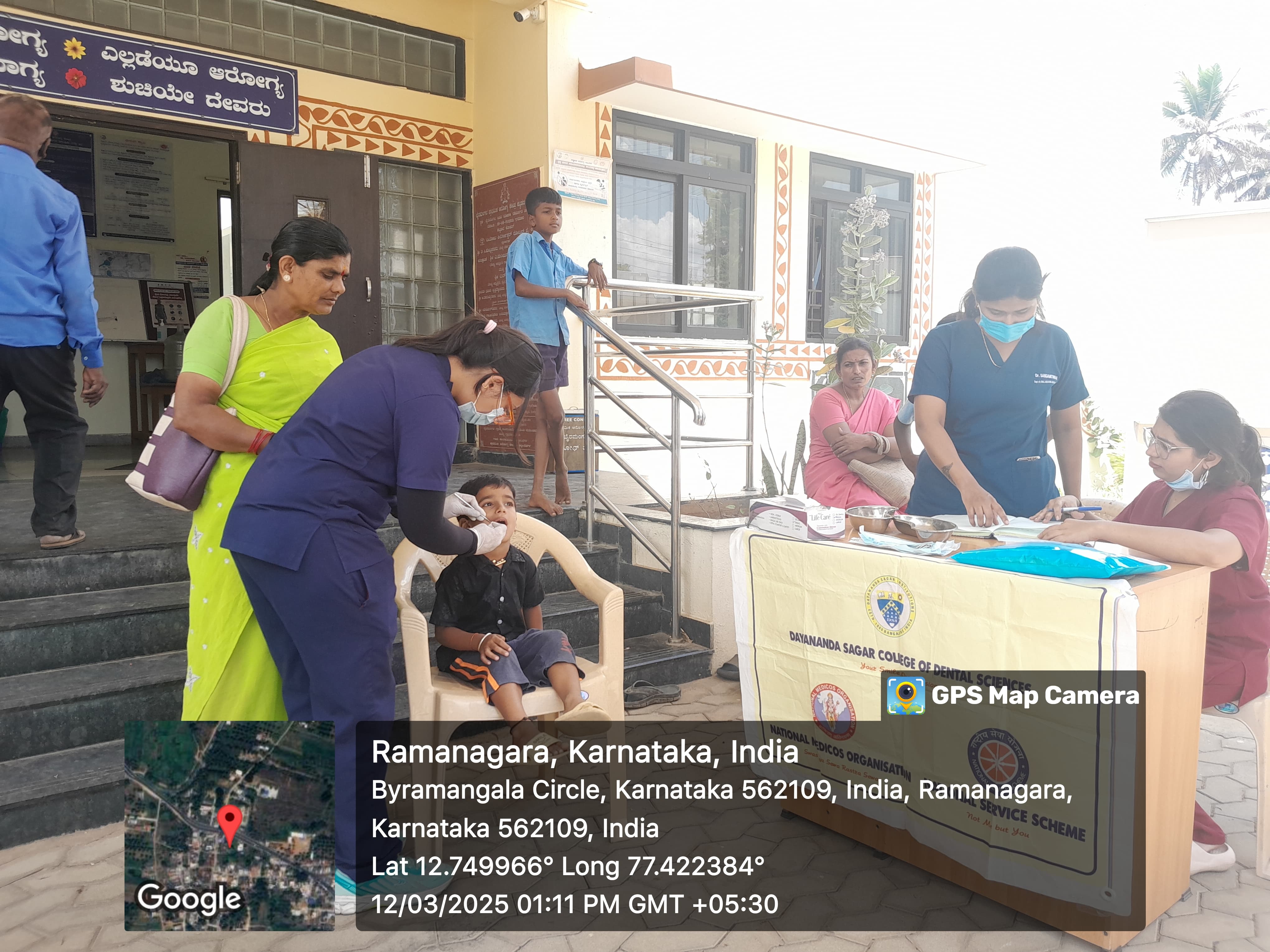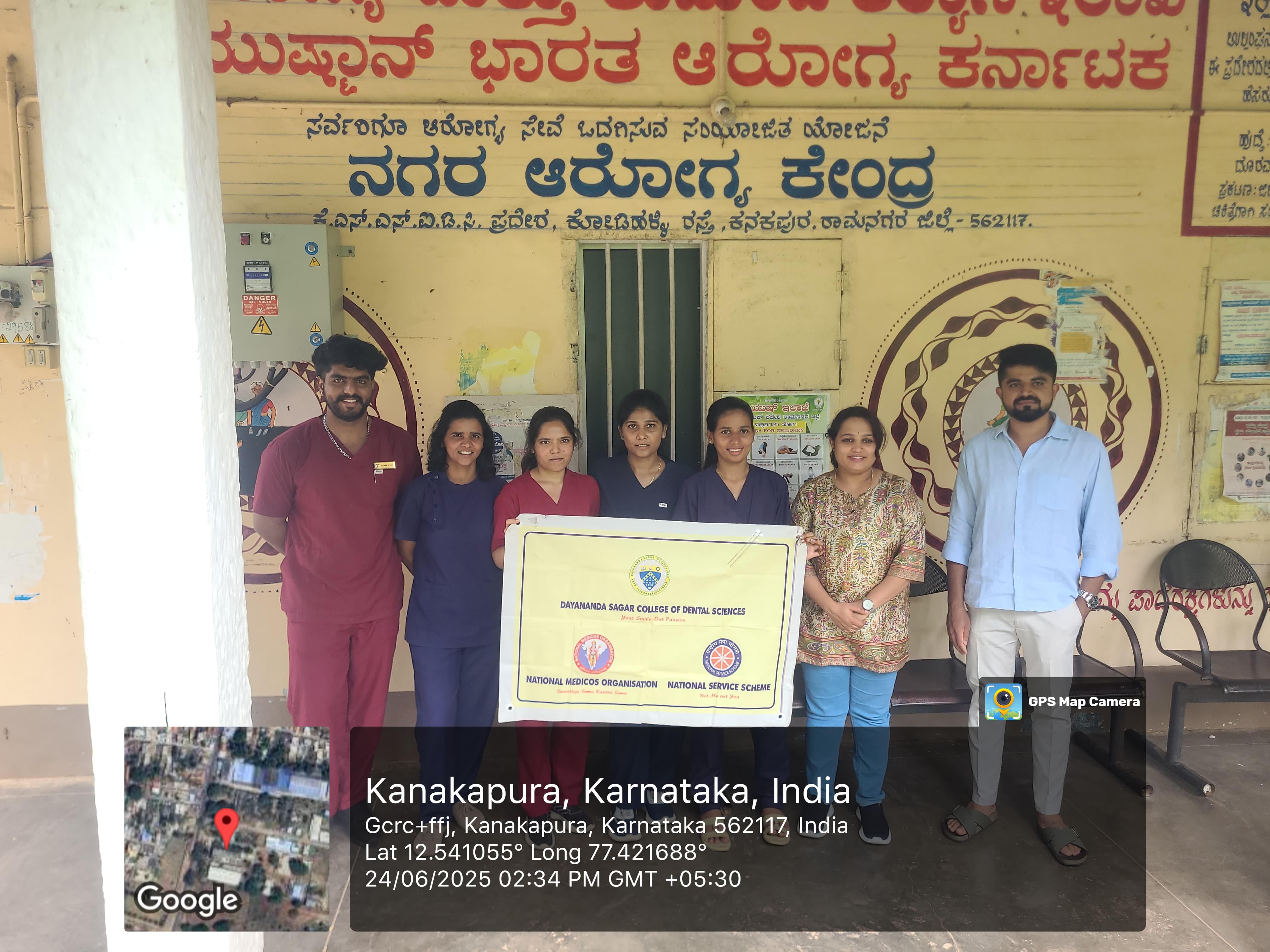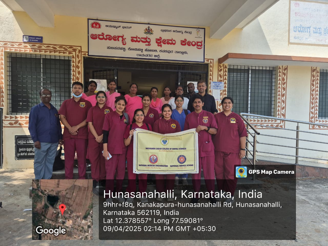 An outreach program of dental treatment was organized at PHC Aranakuppe , Kanakpura , on 13th August 2025 . The designated location from the college was about 60km. A team of four dental doctors from Dayananda Sagar College of Dental Sciences was coordinated by Dr.Prajwal Prabhu, Senior Lecturer,Department of Orthodontics. The dental team started from college at 9:00am am with basic equipment and portable dental unit and reached the camp site by 10:30am. The camp started at 10:30am and went on till 2:00pm. The treatments included scaling and restoration of teeth. After lunch the team left the camp site by 02.30pm and reached the college by 03:30pm.