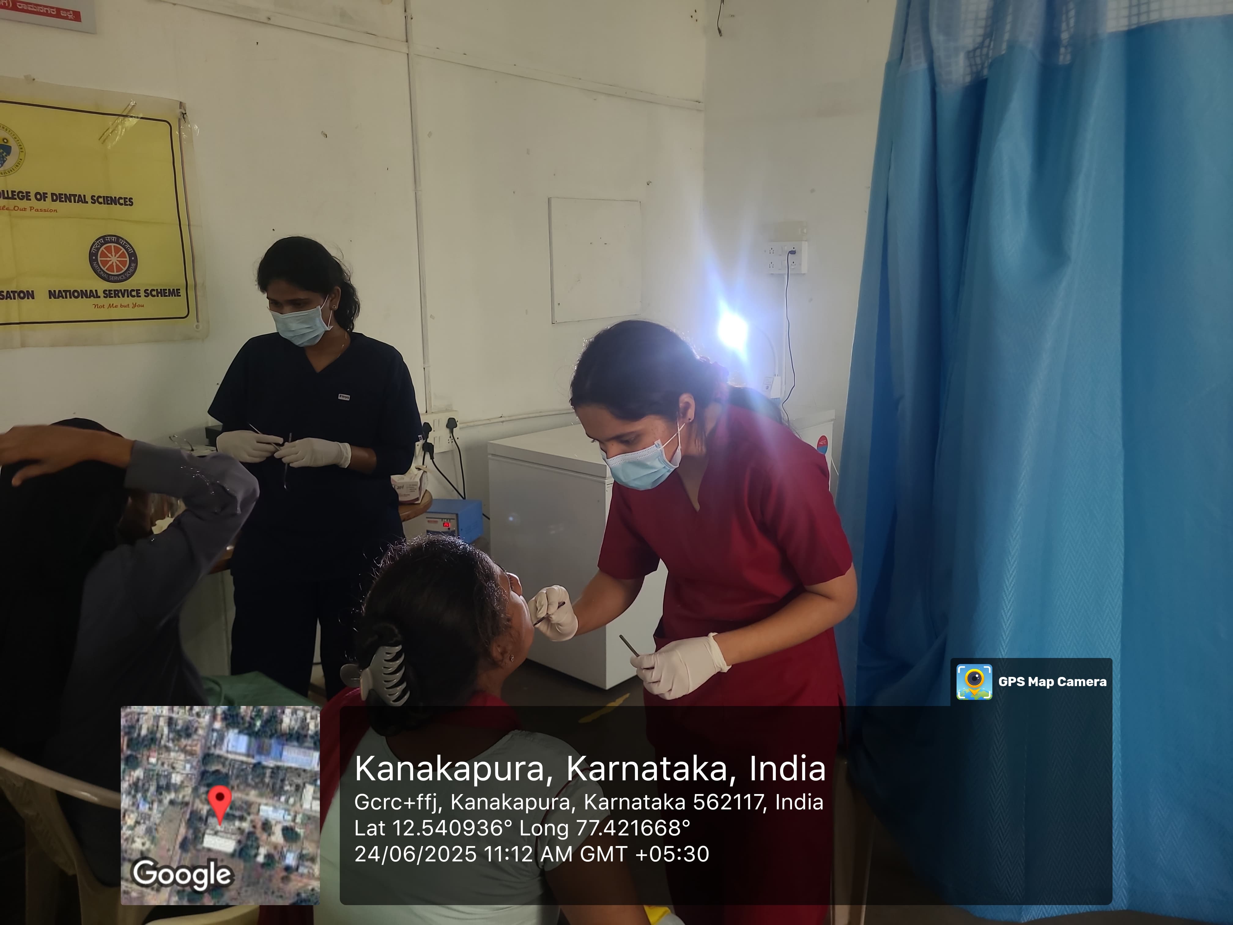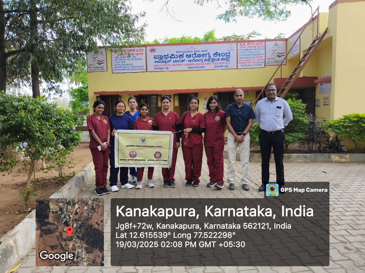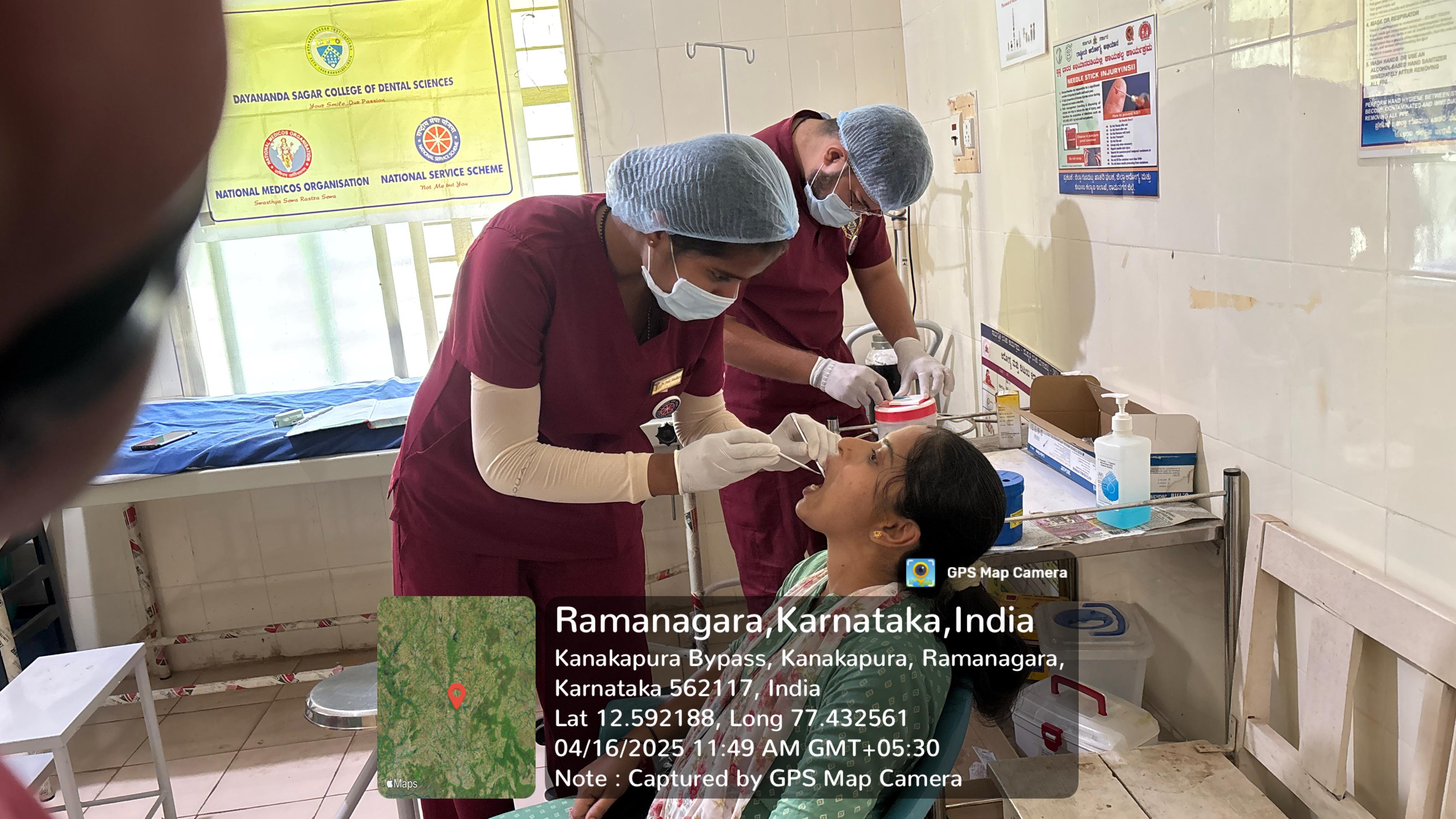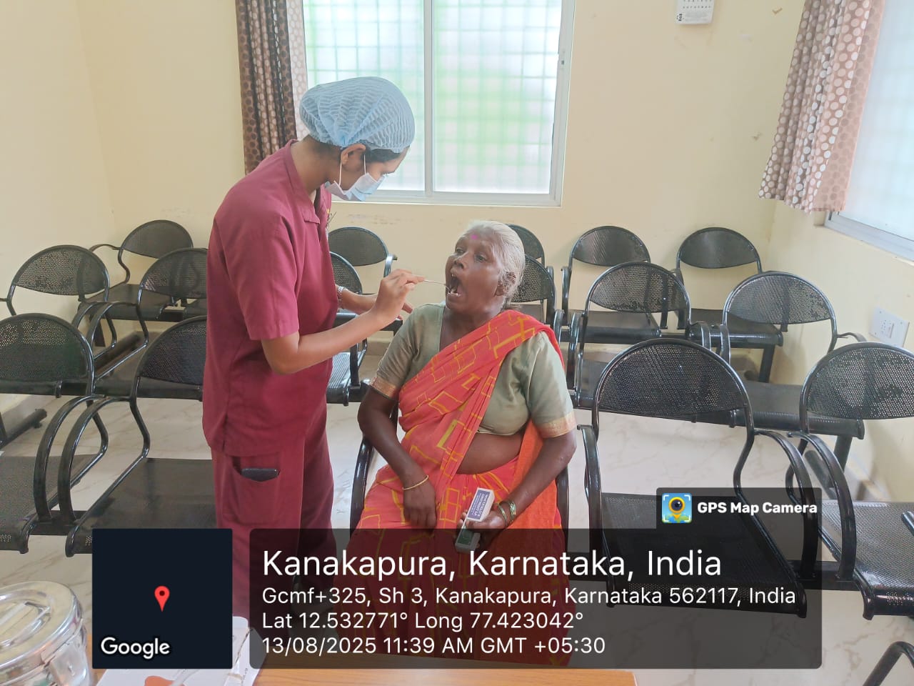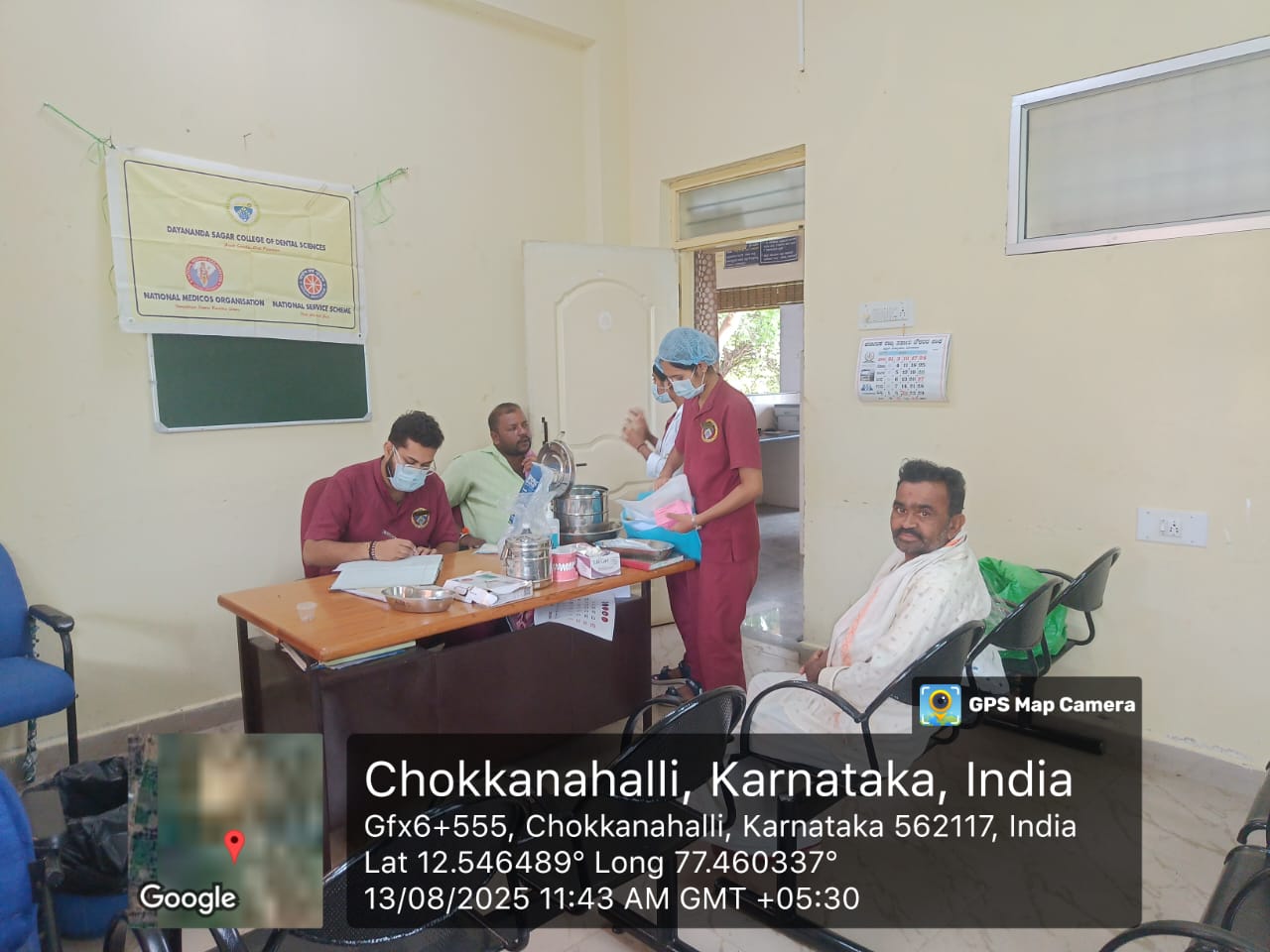 An outreach program of dental treatment was organized at PHC Aranakuppe , Kanakpura , on 13th August 2025 . The designated location from the college was about 60km. A team of four dental doctors from Dayananda Sagar College of Dental Sciences was coordinated by Dr.Prajwal Prabhu, Senior Lecturer,Department of Orthodontics. The dental team started from college at 9:00am am with basic equipment and portable dental unit and reached the camp site by 10:30am. The camp started at 10:30am and went on till 2:00pm. The treatments included scaling and restoration of teeth. After lunch the team left the camp site by 02.30pm and reached the college by 03:30pm.
