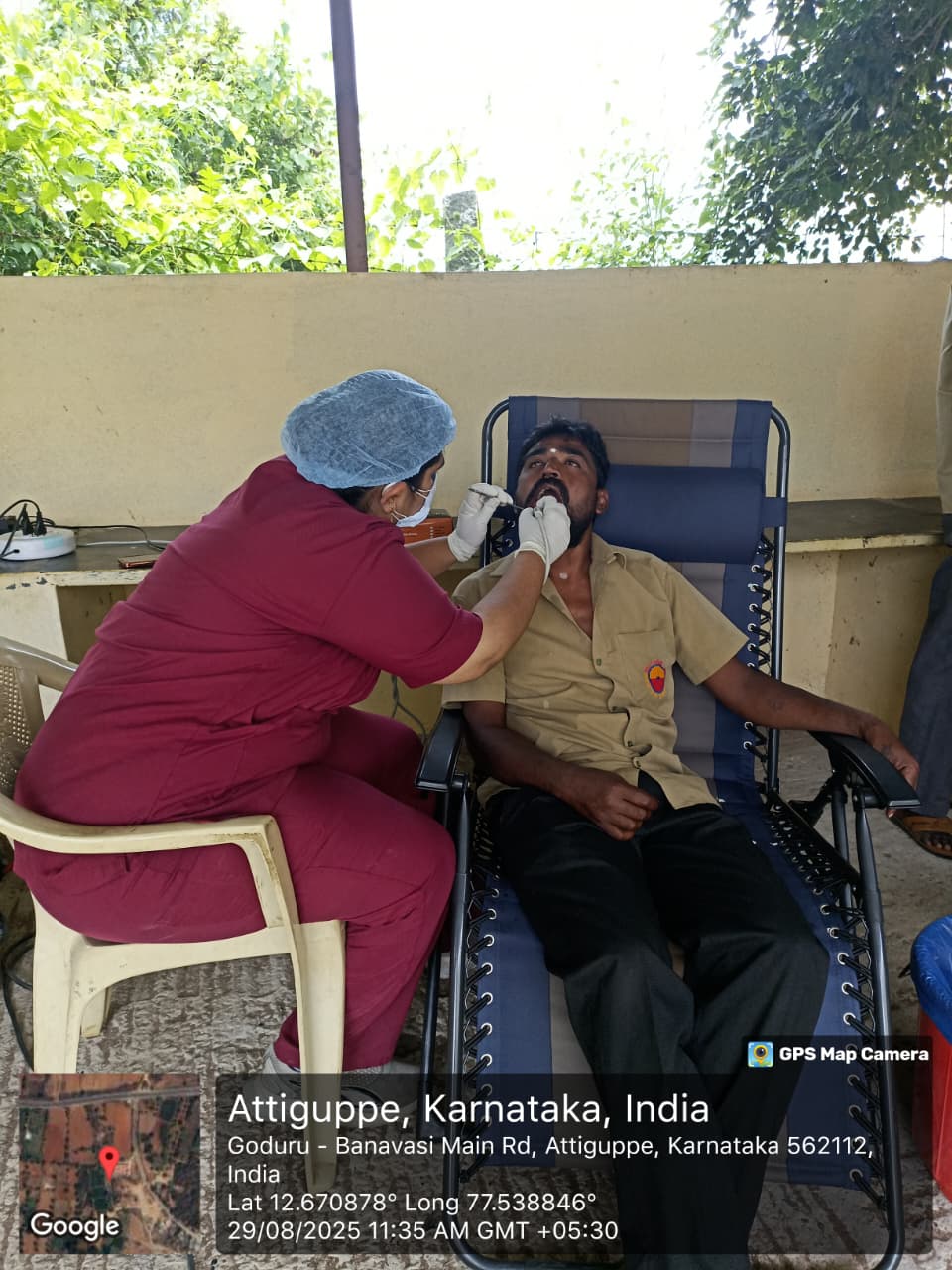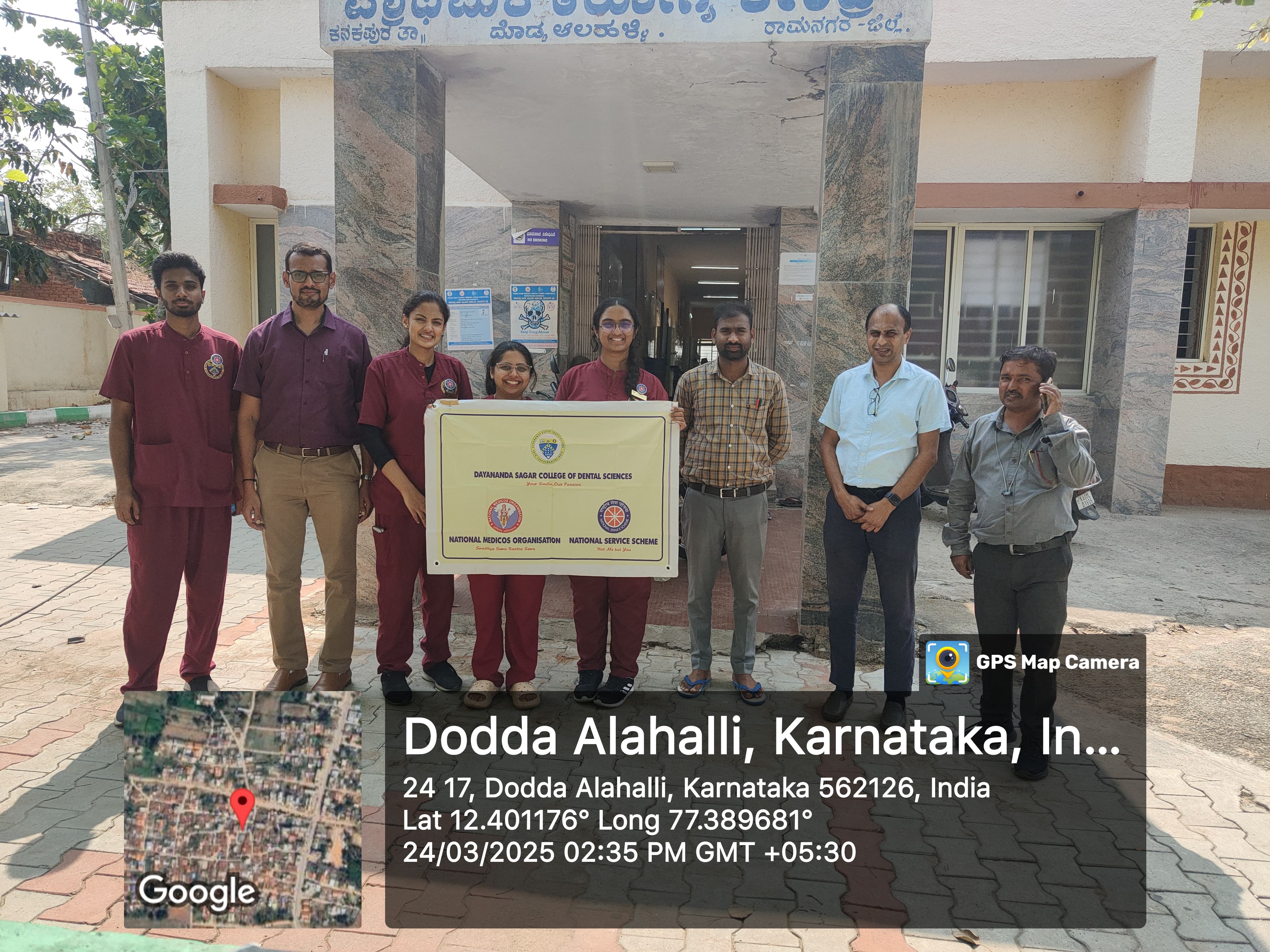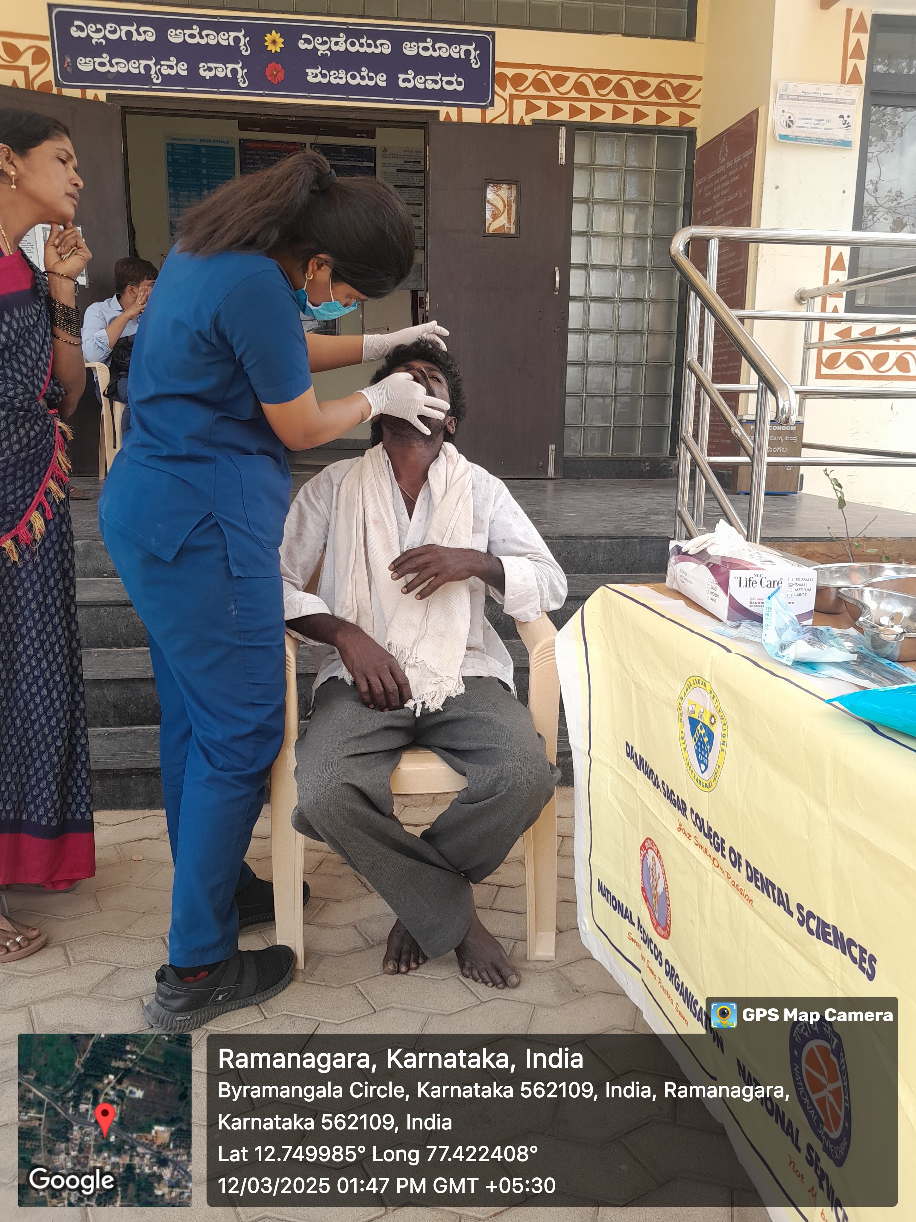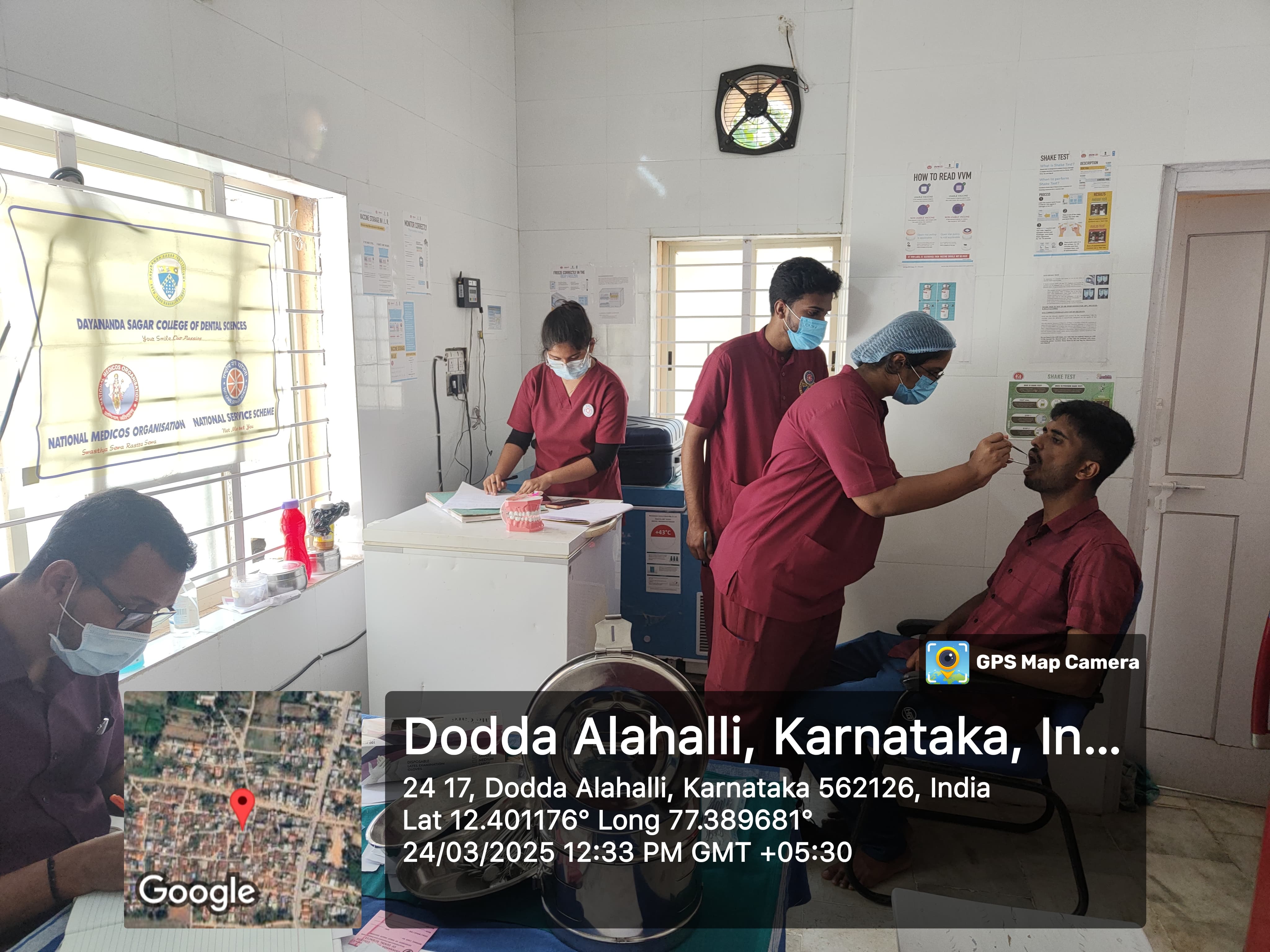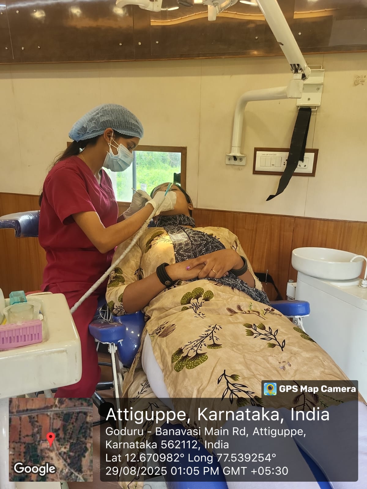 An outreach program of dental treatment was organized at PHC Aranakuppe , Kanakpura , on 13th August 2025 . The designated location from the college was about 60km. A team of four dental doctors from Dayananda Sagar College of Dental Sciences was coordinated by Dr.Prajwal Prabhu, Senior Lecturer,Department of Orthodontics. The dental team started from college at 9:00am am with basic equipment and portable dental unit and reached the camp site by 10:30am. The camp started at 10:30am and went on till 2:00pm. The treatments included scaling and restoration of teeth. After lunch the team left the camp site by 02.30pm and reached the college by 03:30pm.