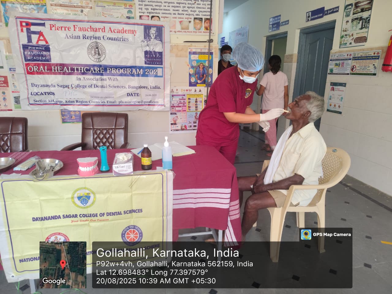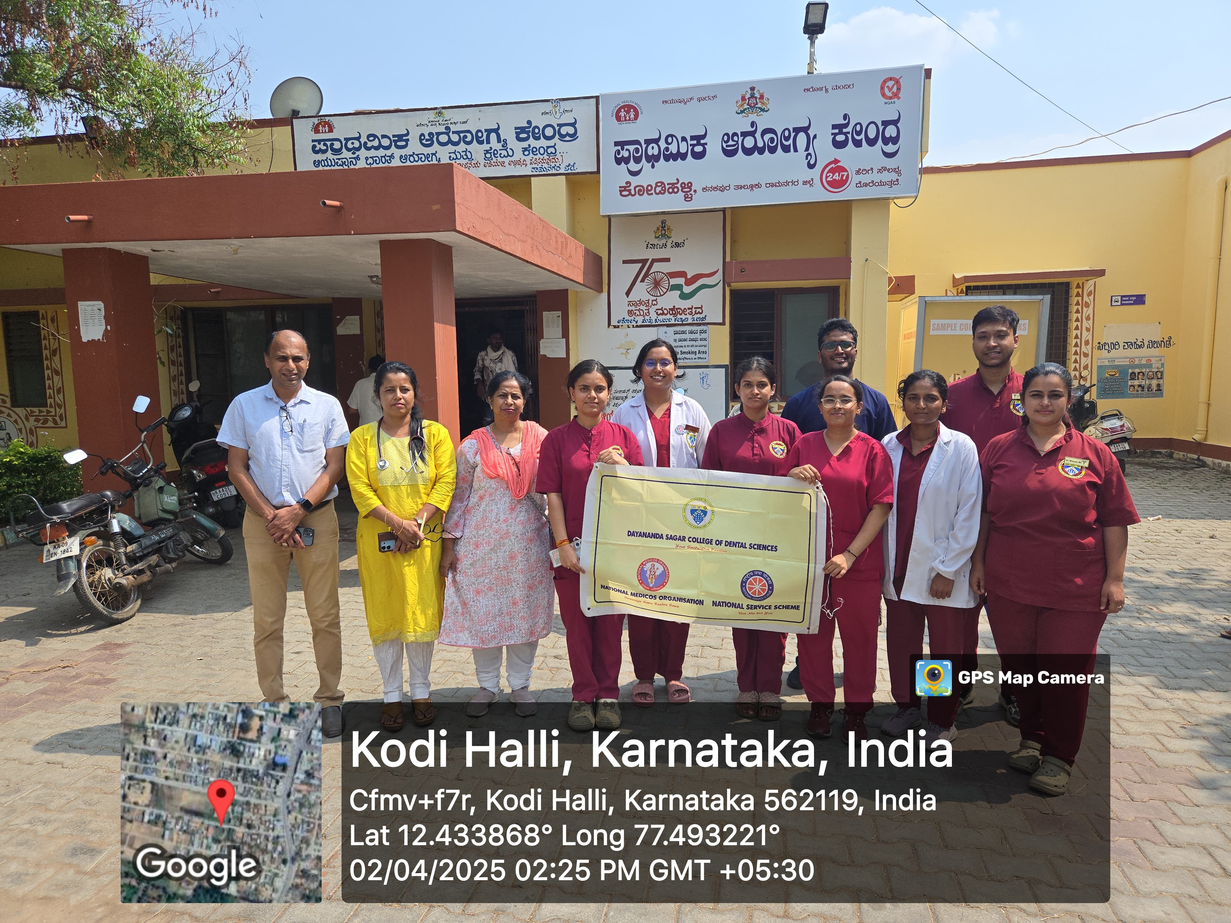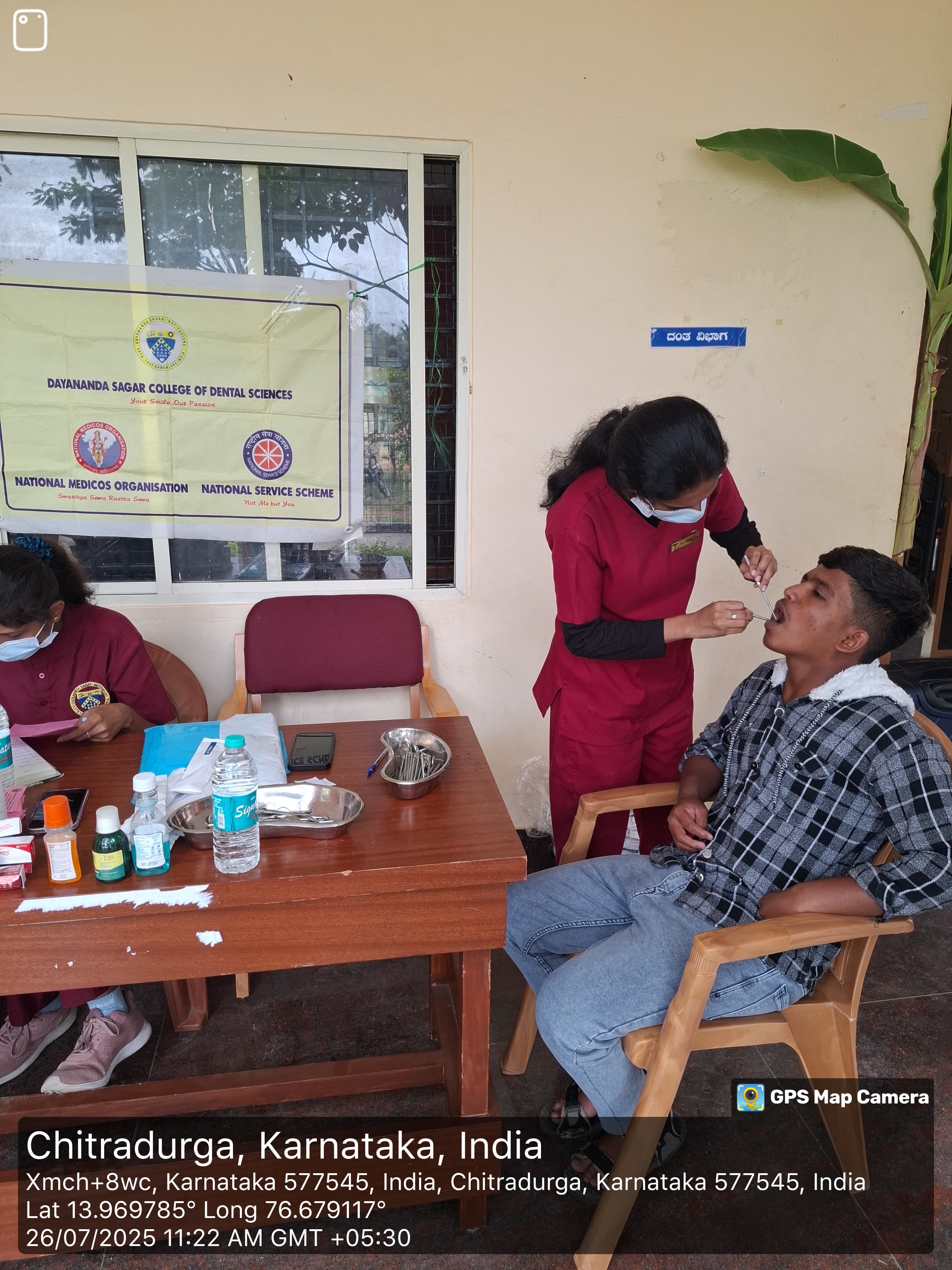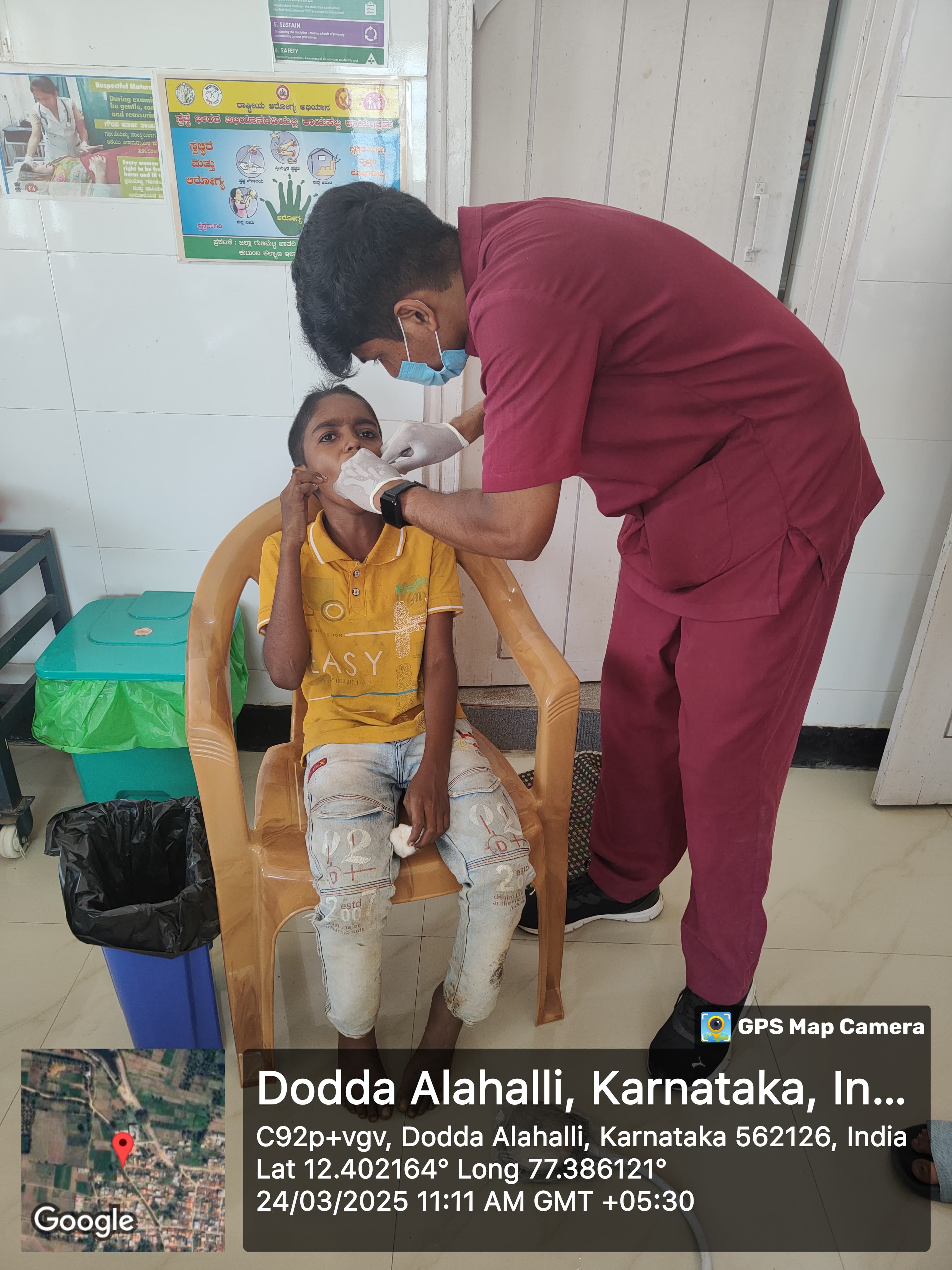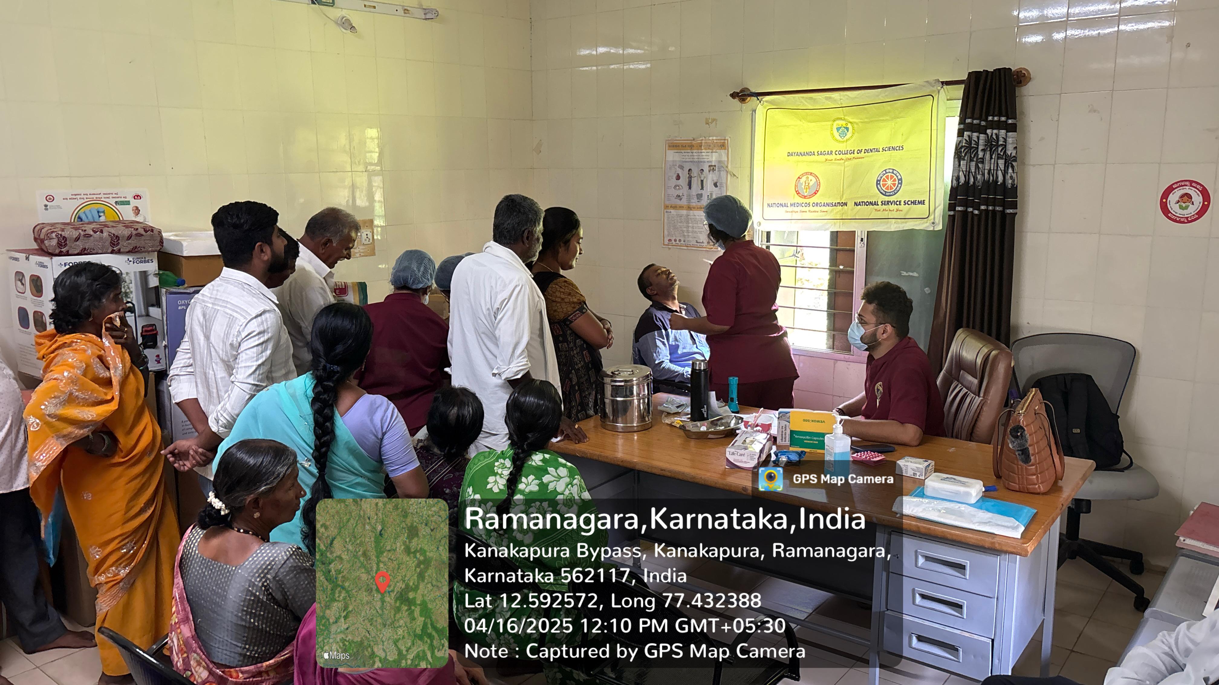 An outreach program of dental treatment was organized at PHC Aranakuppe , Kanakpura , on 13th August 2025 . The designated location from the college was about 60km. A team of four dental doctors from Dayananda Sagar College of Dental Sciences was coordinated by Dr.Prajwal Prabhu, Senior Lecturer,Department of Orthodontics. The dental team started from college at 9:00am am with basic equipment and portable dental unit and reached the camp site by 10:30am. The camp started at 10:30am and went on till 2:00pm. The treatments included scaling and restoration of teeth. After lunch the team left the camp site by 02.30pm and reached the college by 03:30pm.
