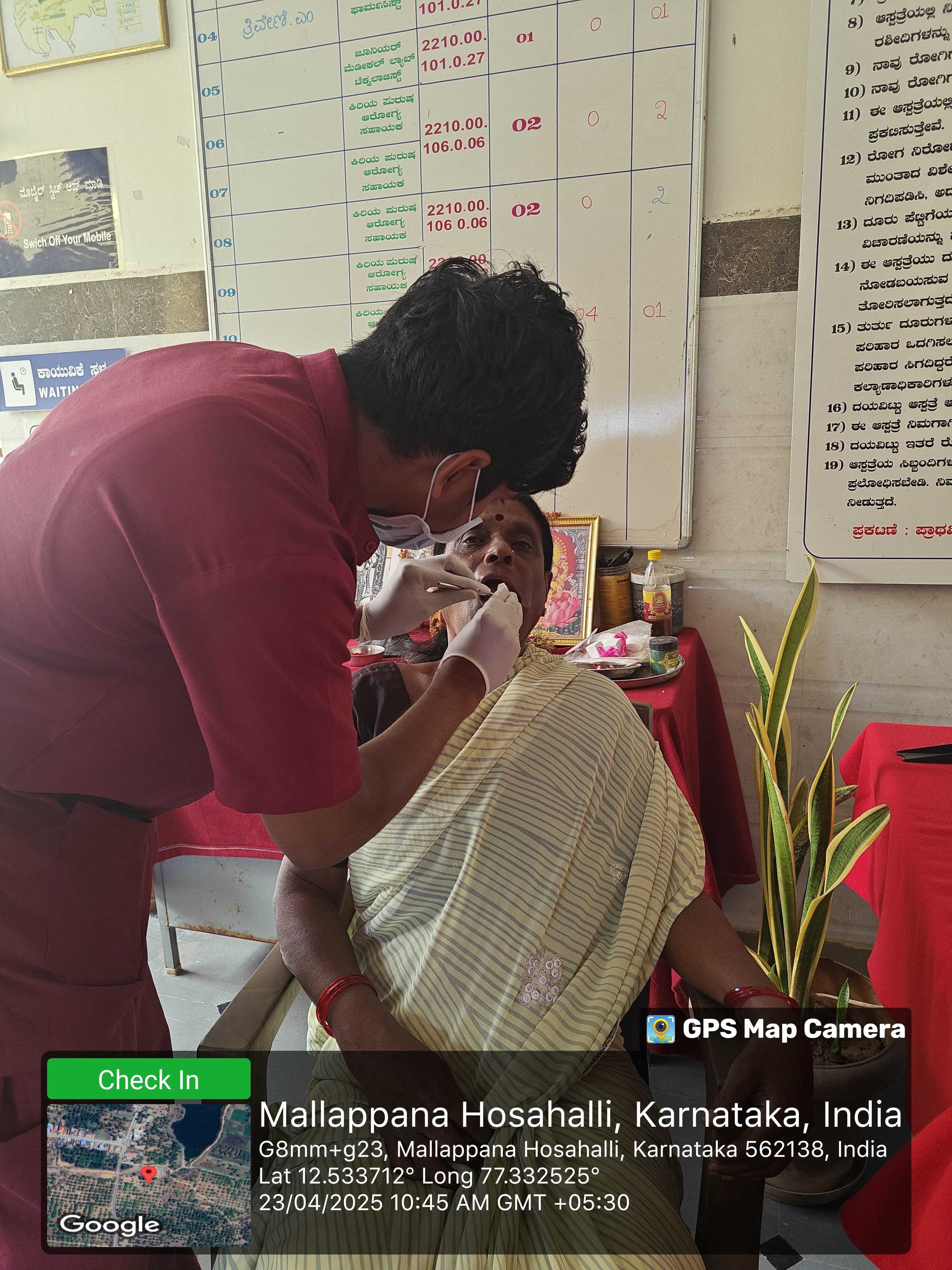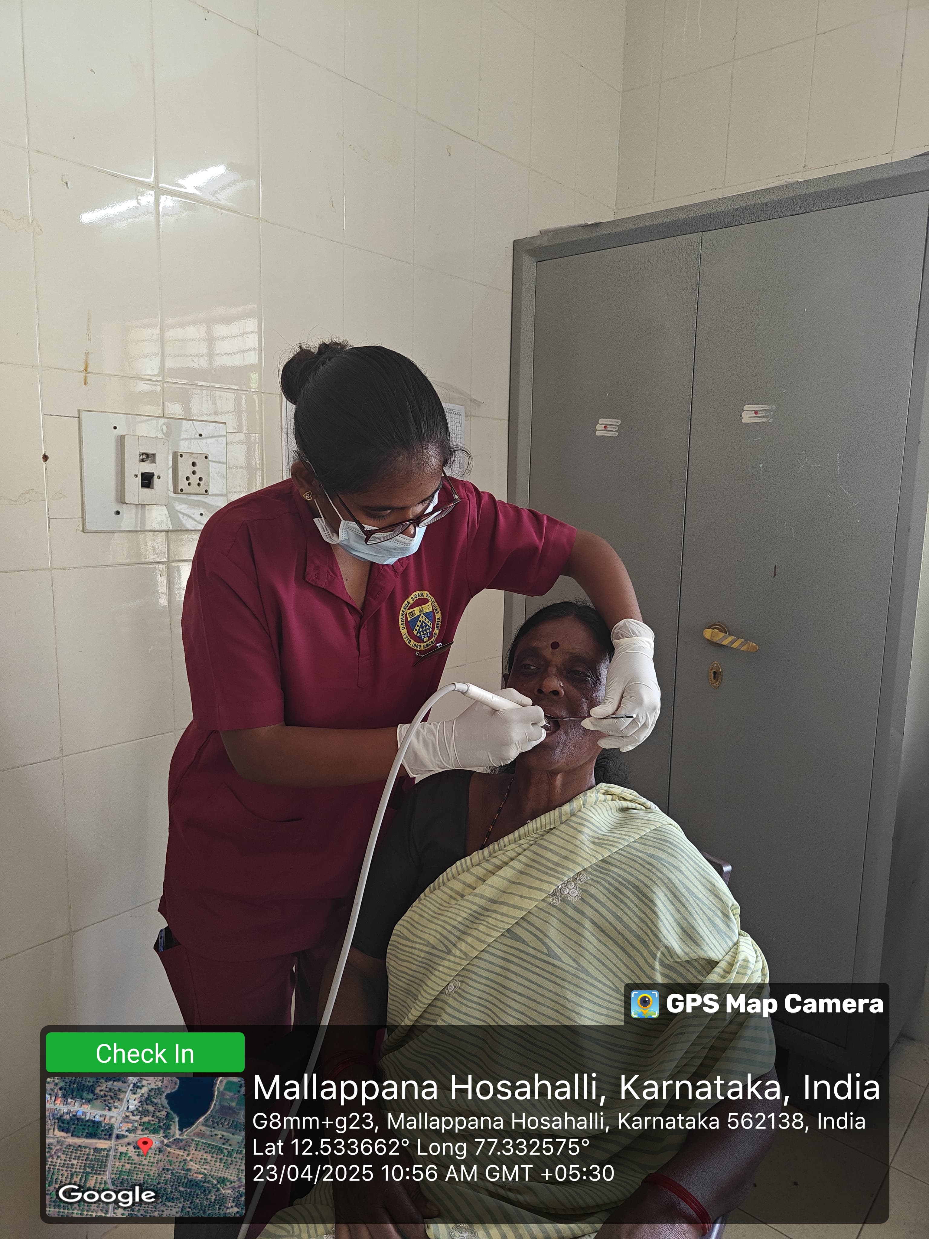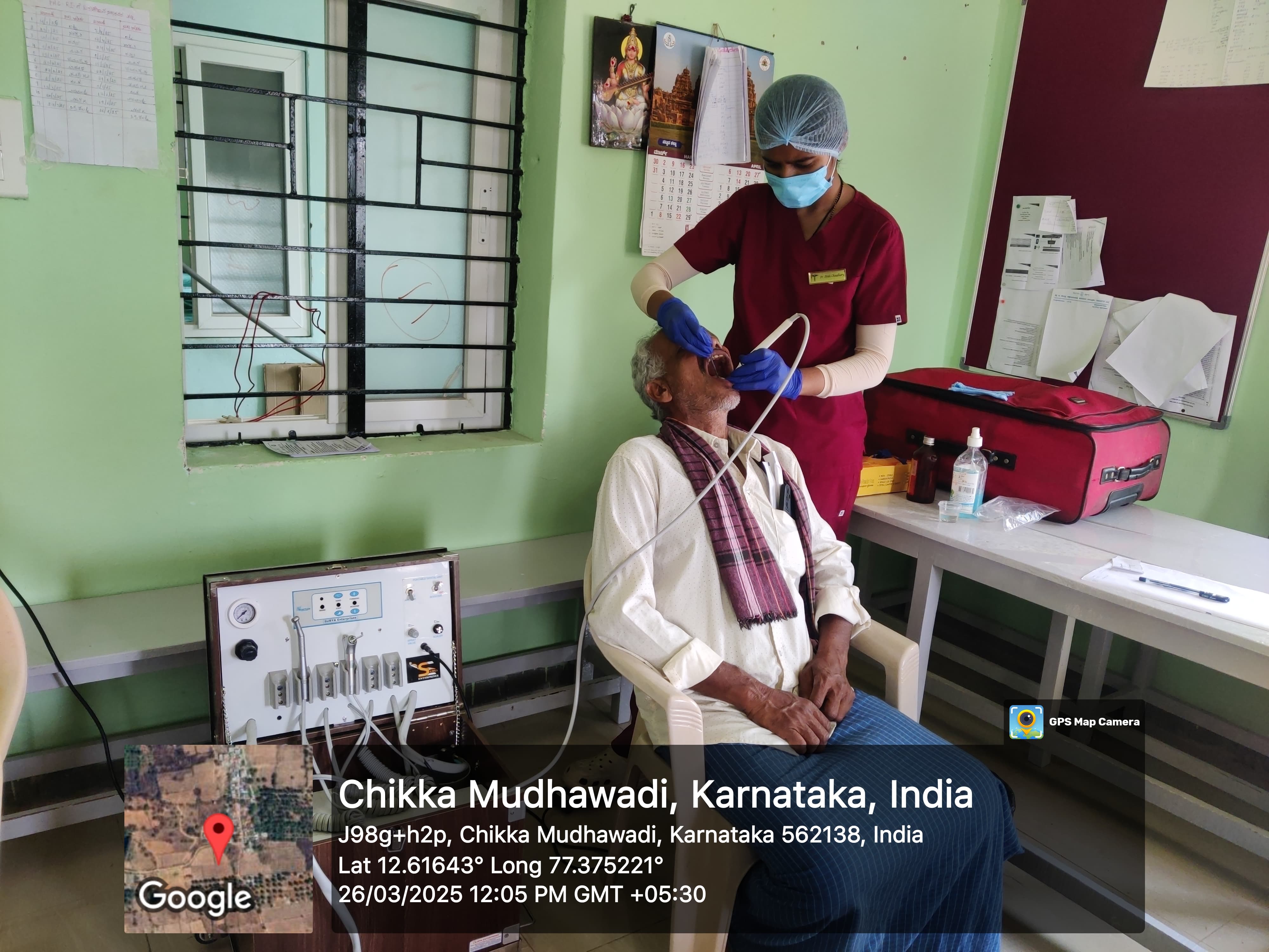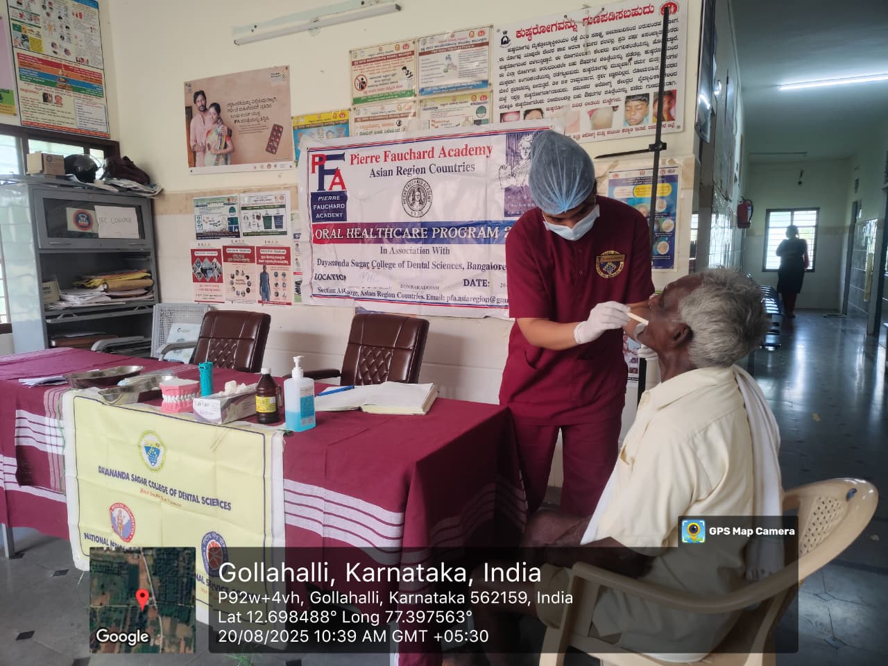 An outreach program of dental treatment was organized at PHC Aranakuppe , Kanakpura , on 13th August 2025 . The designated location from the college was about 60km. A team of four dental doctors from Dayananda Sagar College of Dental Sciences was coordinated by Dr.Prajwal Prabhu, Senior Lecturer,Department of Orthodontics. The dental team started from college at 9:00am am with basic equipment and portable dental unit and reached the camp site by 10:30am. The camp started at 10:30am and went on till 2:00pm. The treatments included scaling and restoration of teeth. After lunch the team left the camp site by 02.30pm and reached the college by 03:30pm.