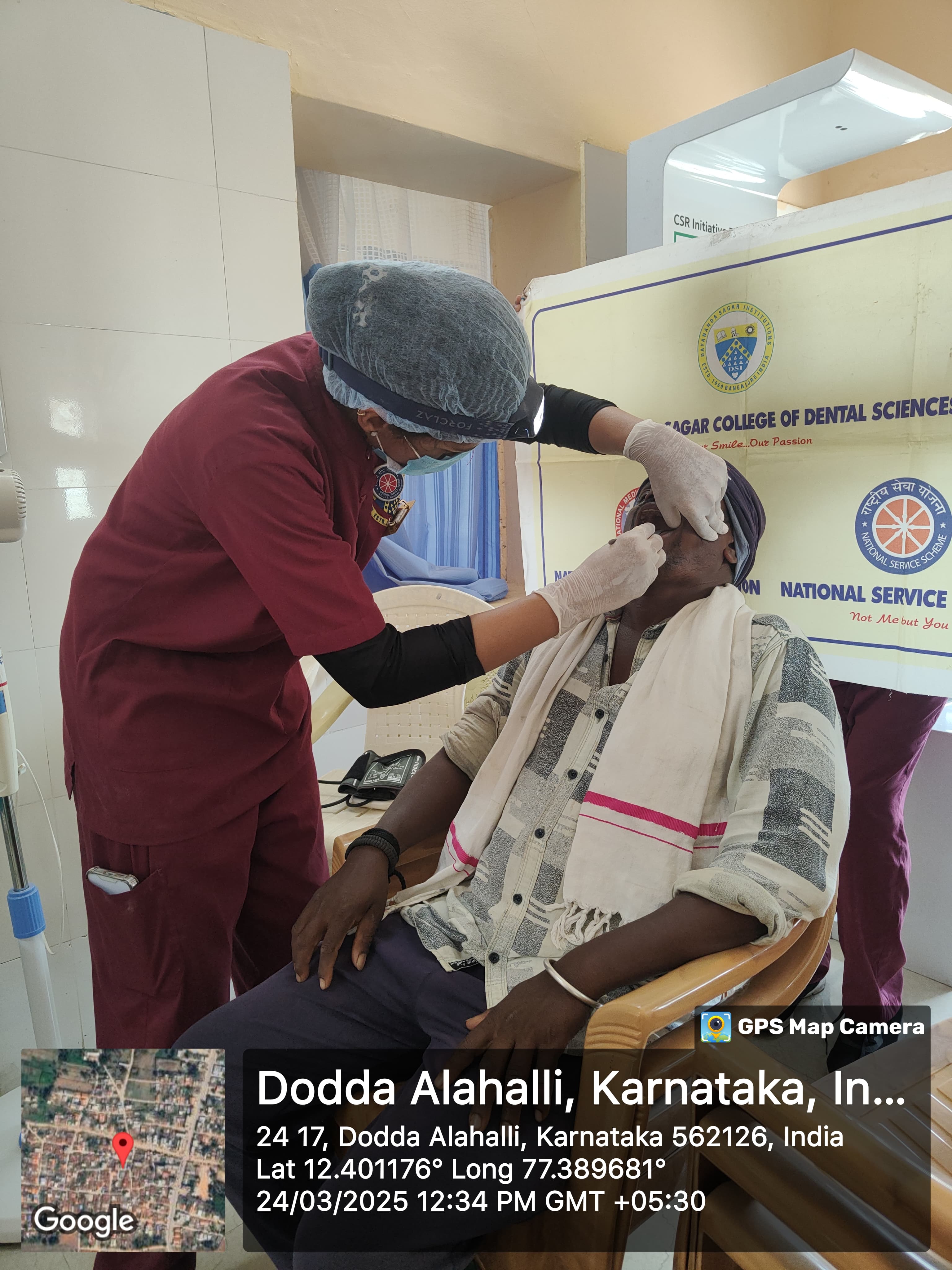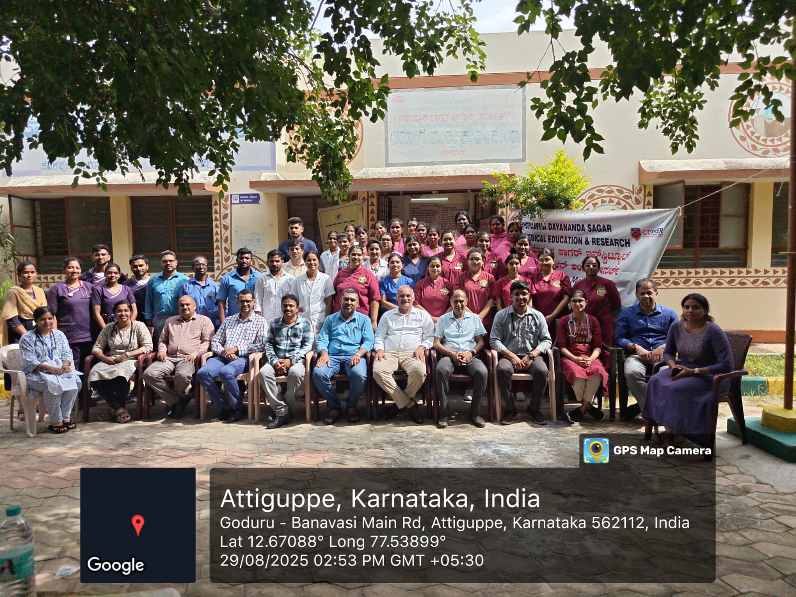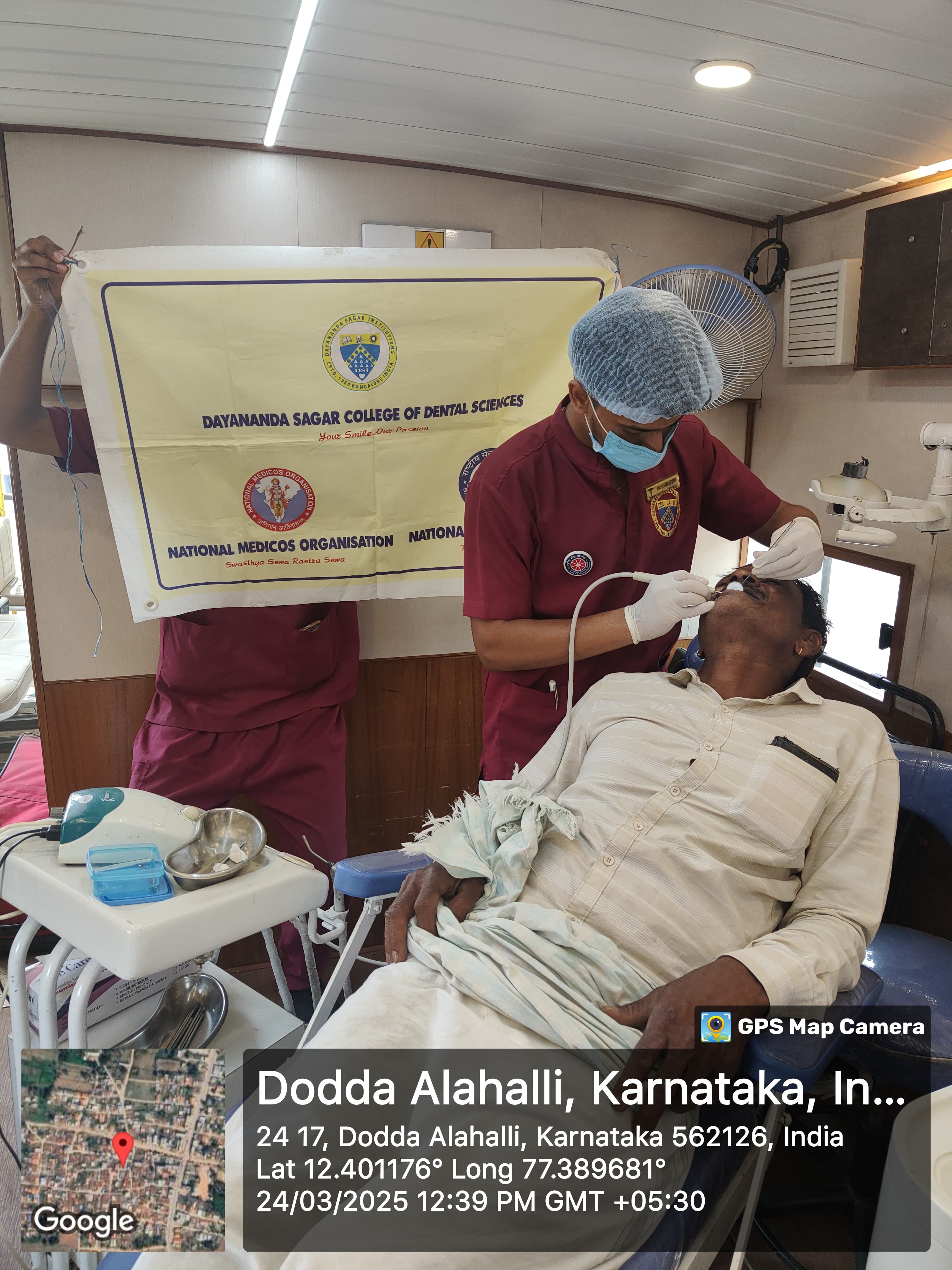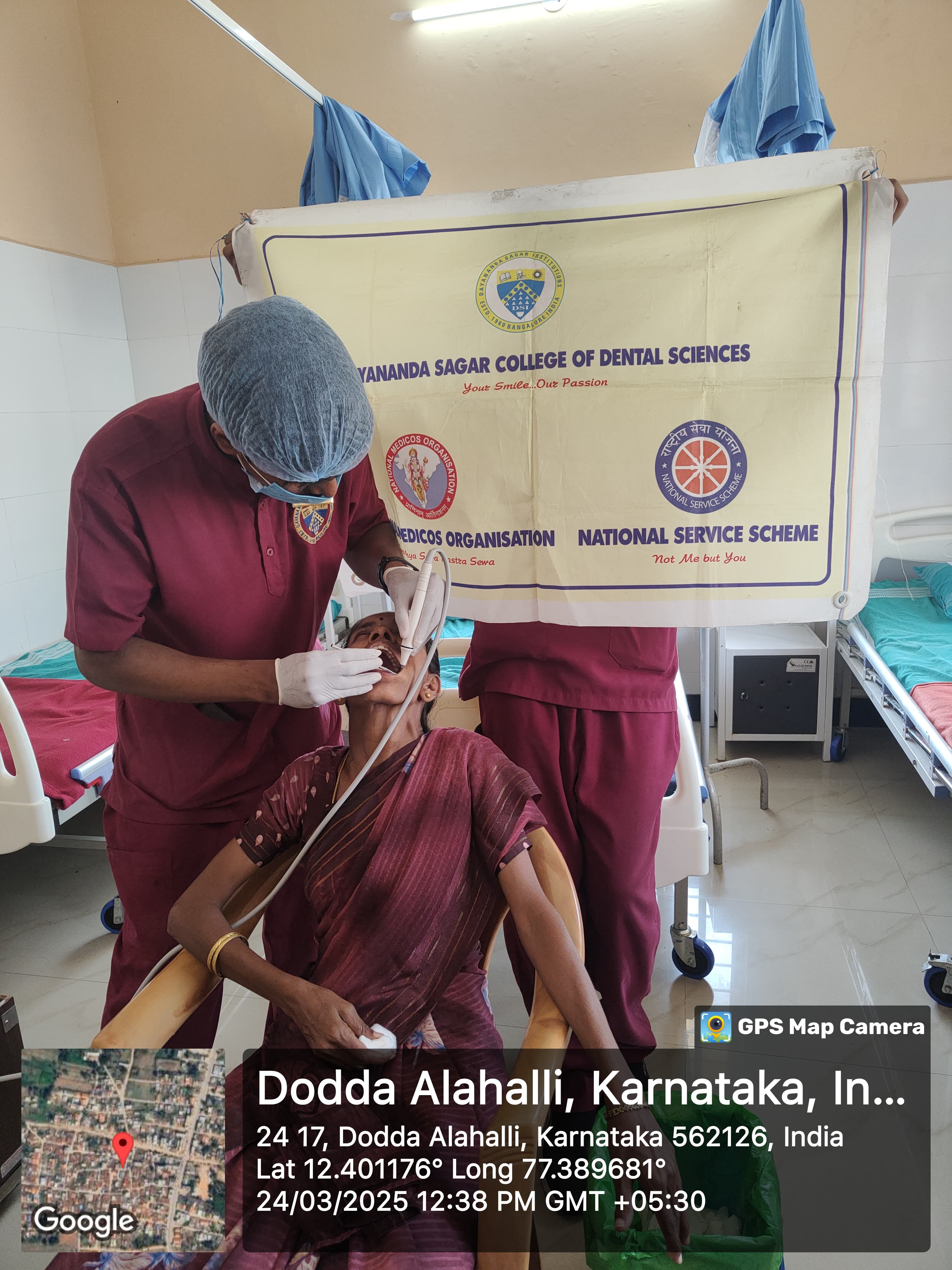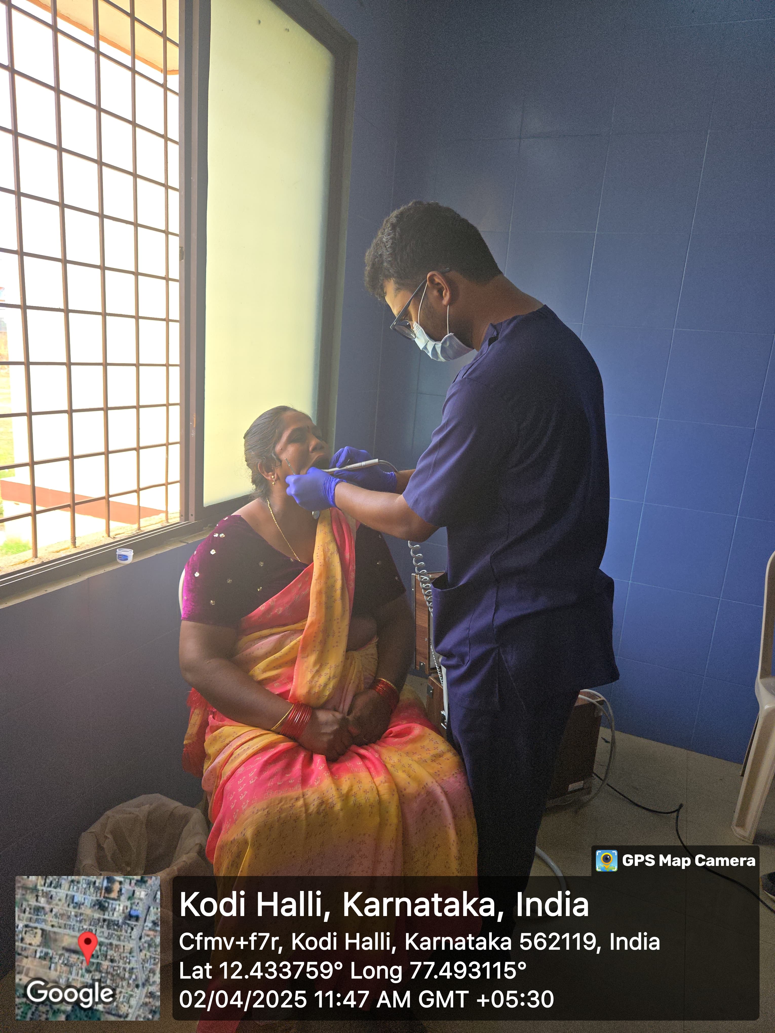 An outreach program of dental treatment was organized at PHC Aranakuppe , Kanakpura , on 13th August 2025 . The designated location from the college was about 60km. A team of four dental doctors from Dayananda Sagar College of Dental Sciences was coordinated by Dr.Prajwal Prabhu, Senior Lecturer,Department of Orthodontics. The dental team started from college at 9:00am am with basic equipment and portable dental unit and reached the camp site by 10:30am. The camp started at 10:30am and went on till 2:00pm. The treatments included scaling and restoration of teeth. After lunch the team left the camp site by 02.30pm and reached the college by 03:30pm.