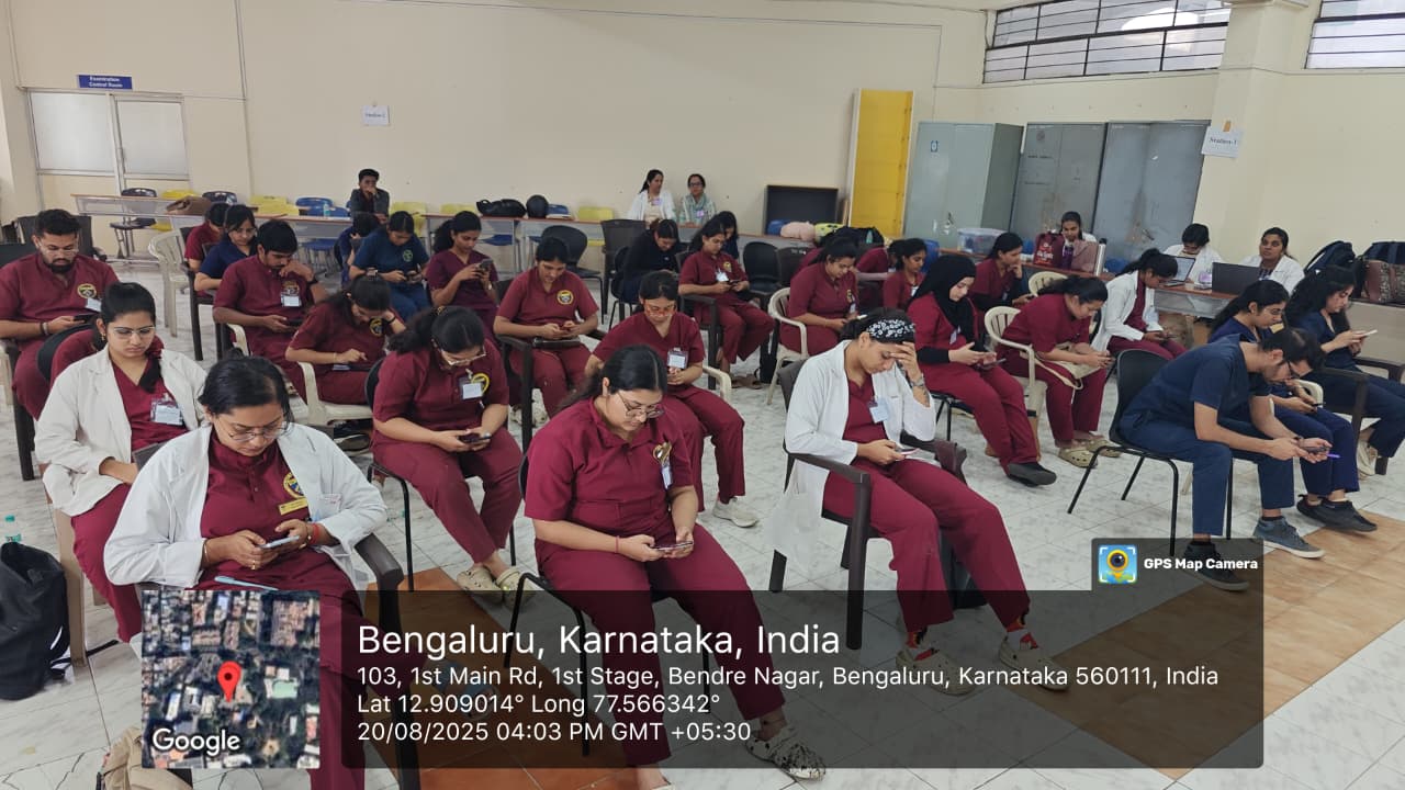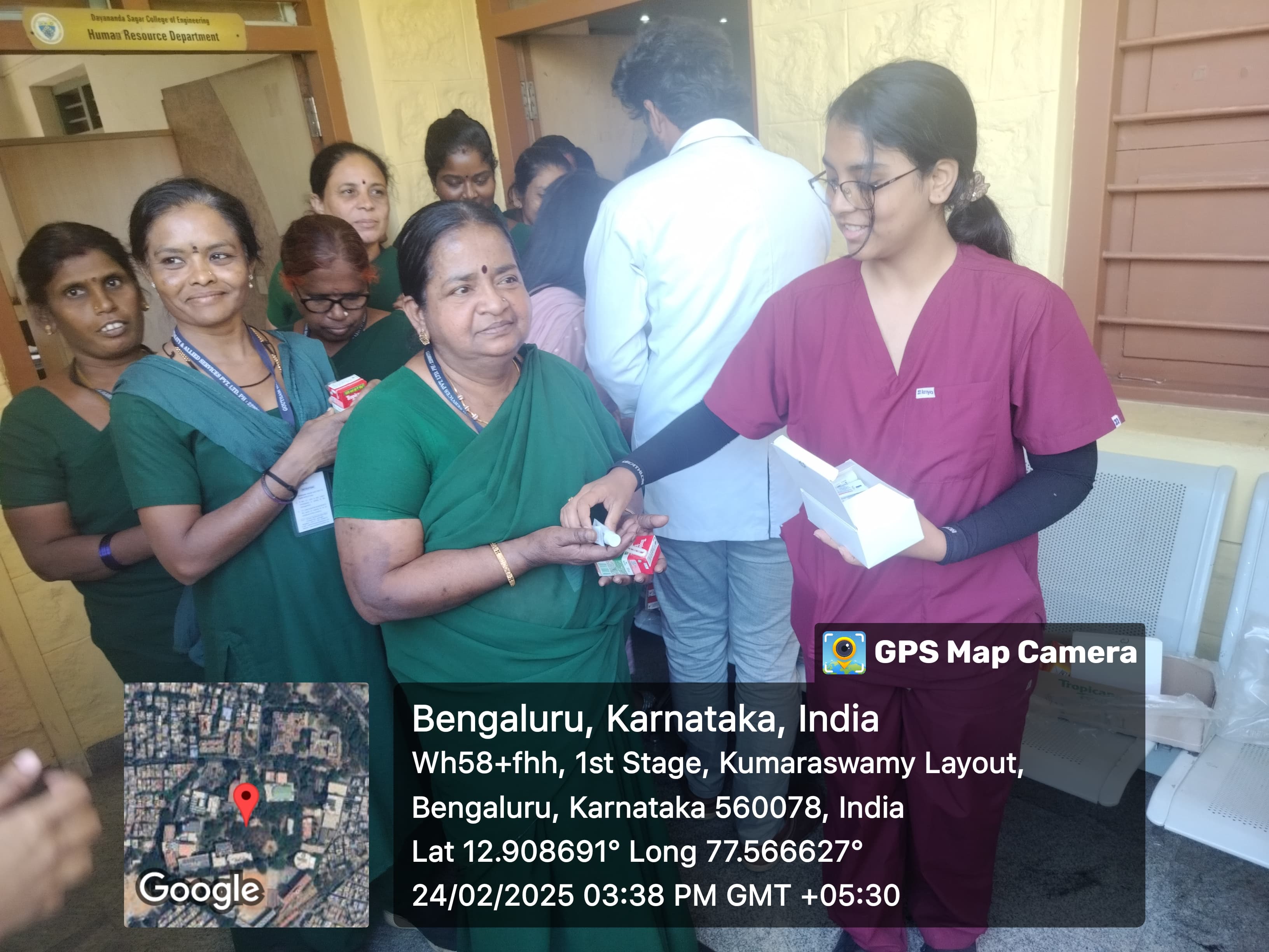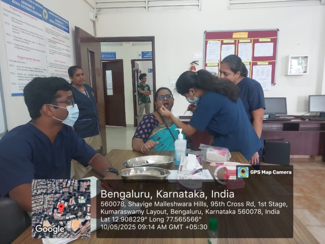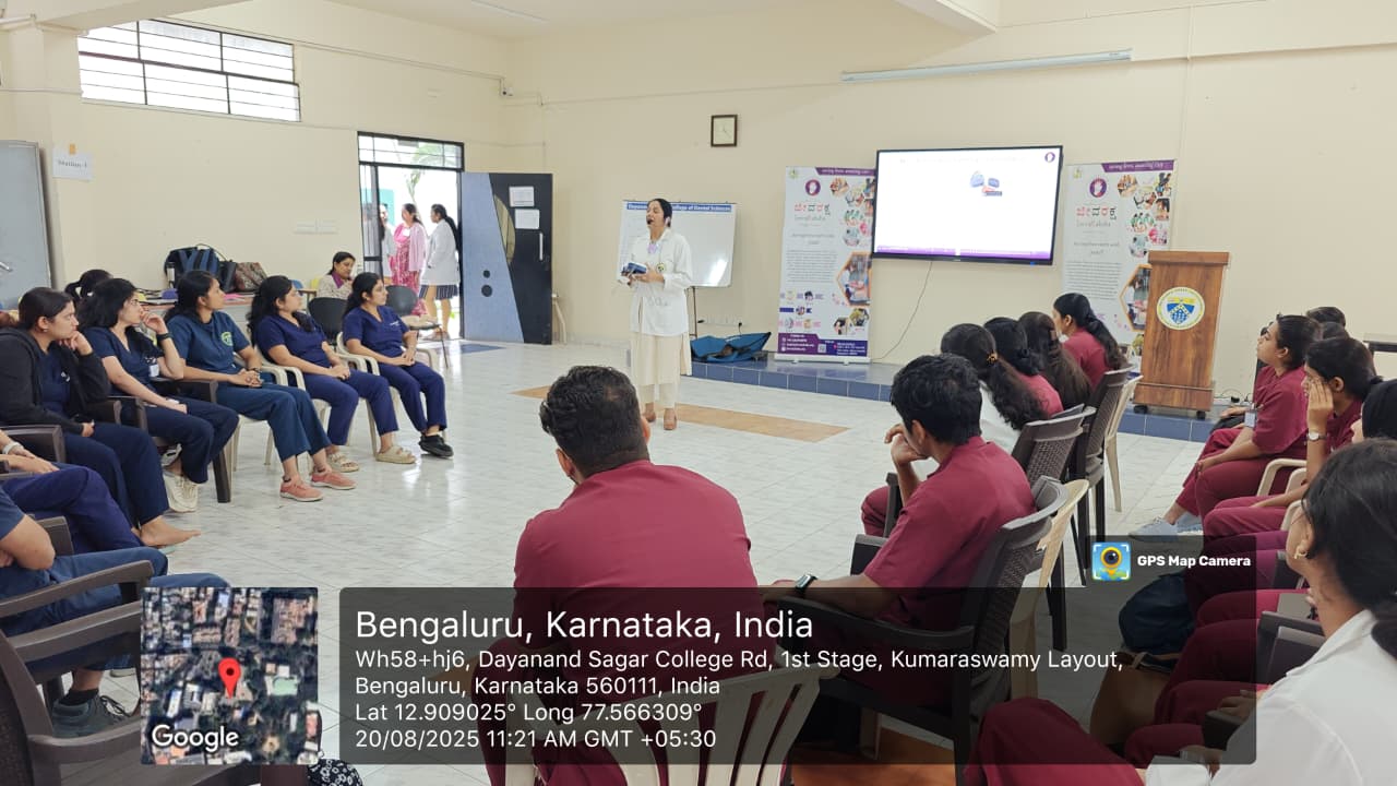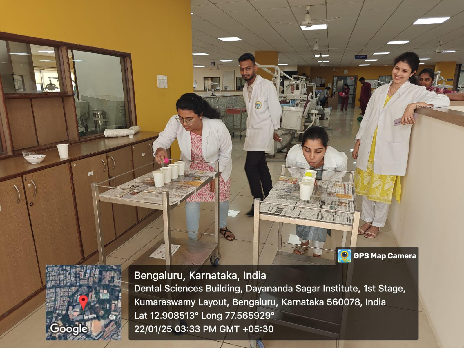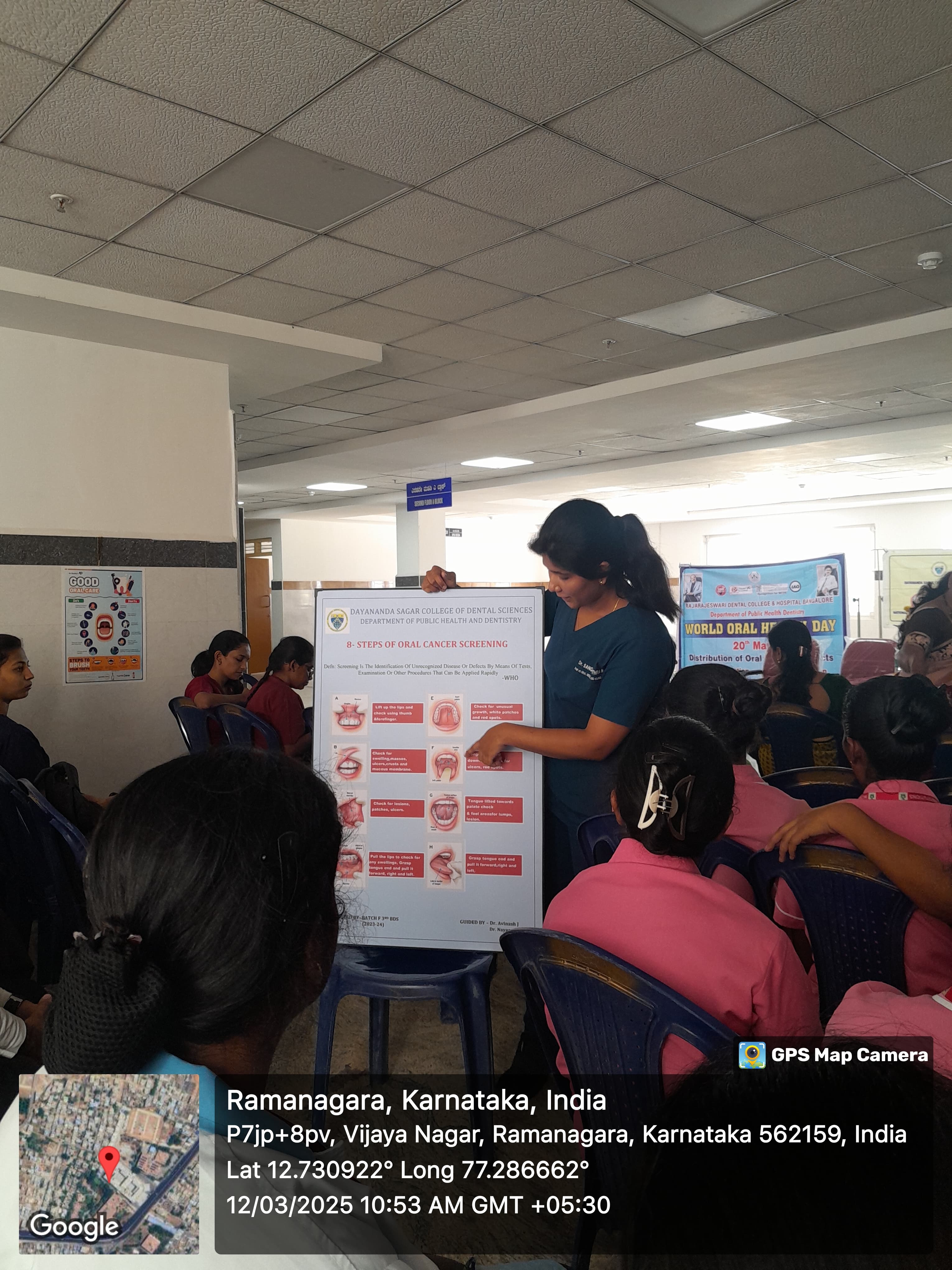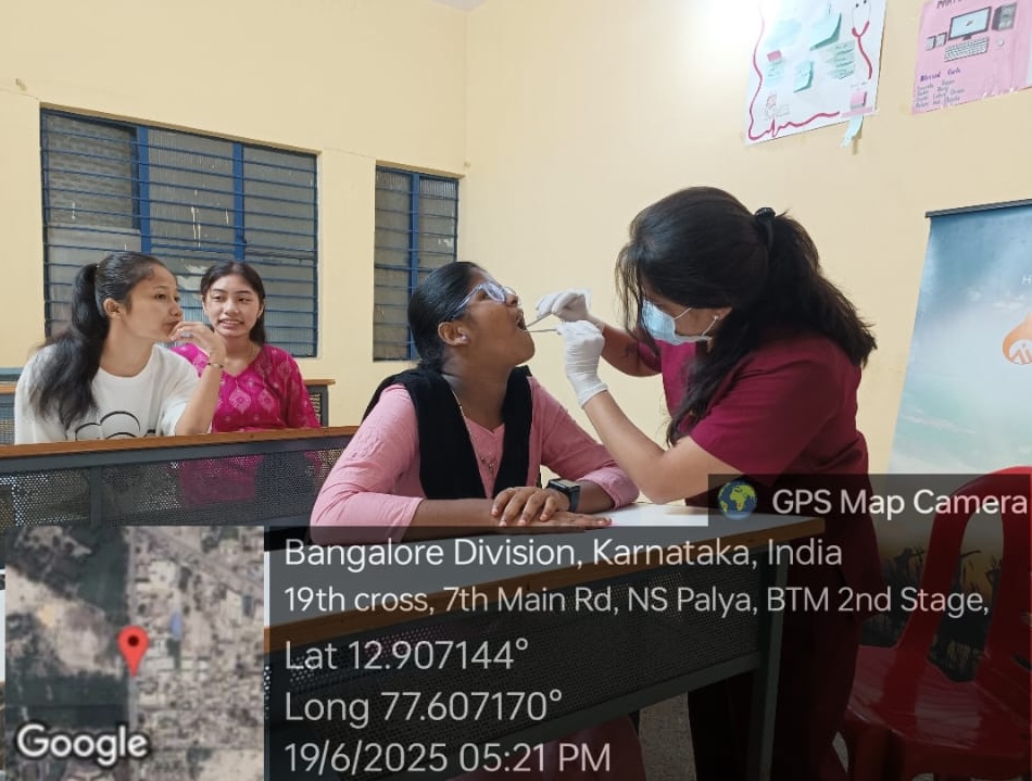 An outreach dental screening program was organized at Women’s Peace League School, Basavanagudi on 17th July 2025. The designated location of the camp was about 7 kms from the college. Intern Thejas Shekar, Yukthi SM, Yashika Shinde, Vaishnavi , Aishwarya and PG Dr Sangamithra from Department of Public Health Dentistry, Dayananda Sagar College of Dental Sciences, participated in the program. The dental team started from the college at 9:15 AM and reached the camp site at 09:45 AM. The camp started at 10:00 AM and went on till 4:00 PM. Awareness about oral hygiene, brushing techniques were given. The team left the camp site by 4:15pm and reached the college by 4:45 pm.