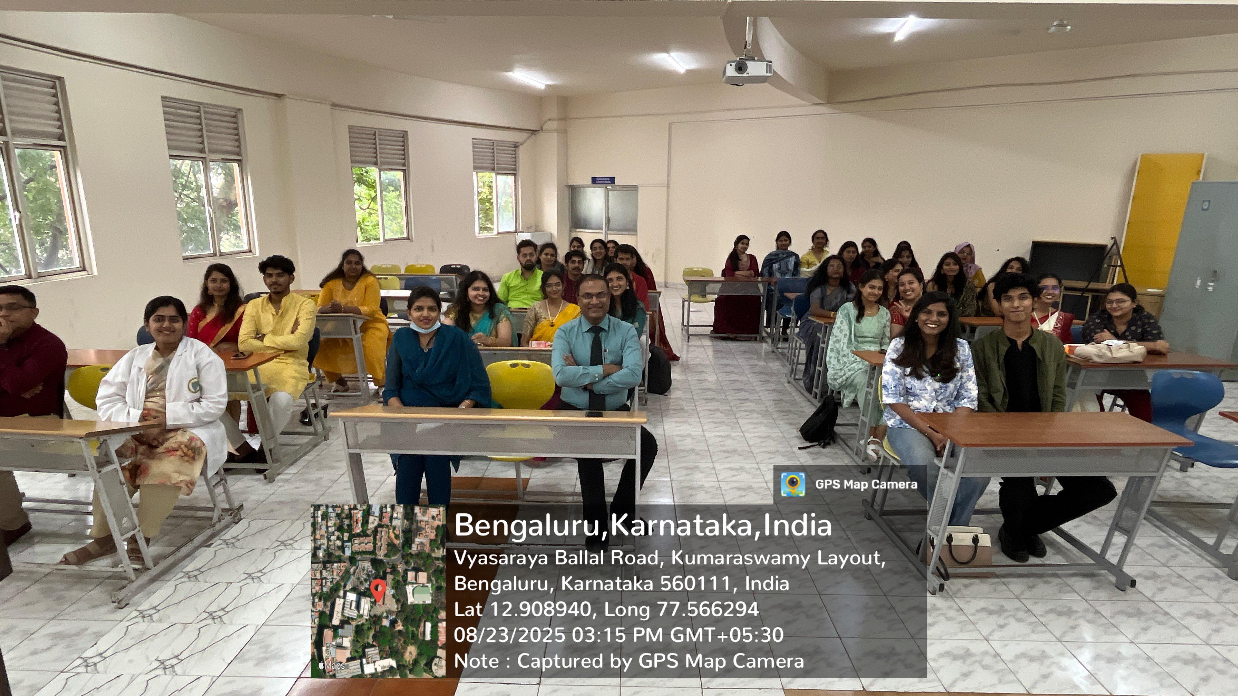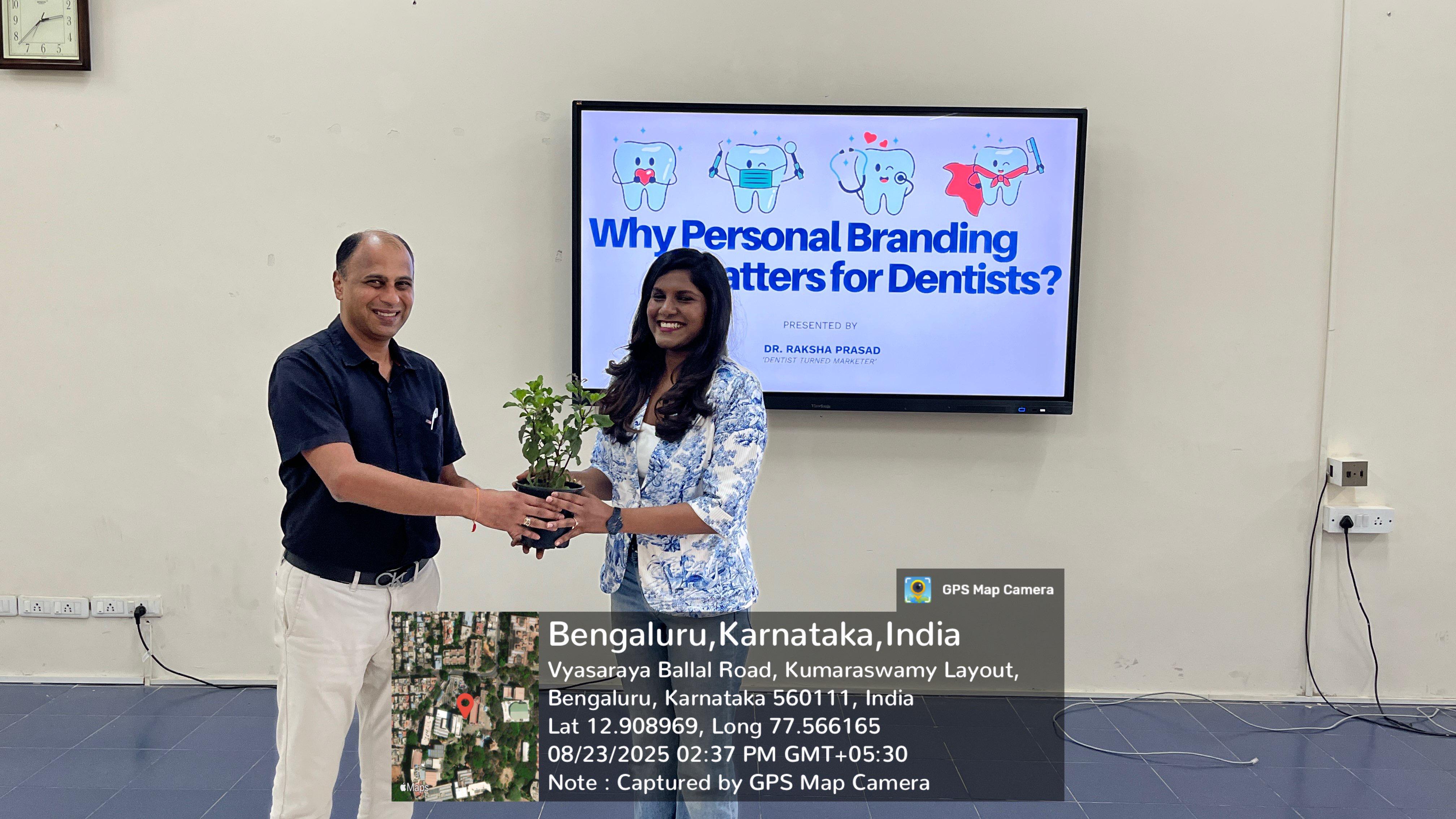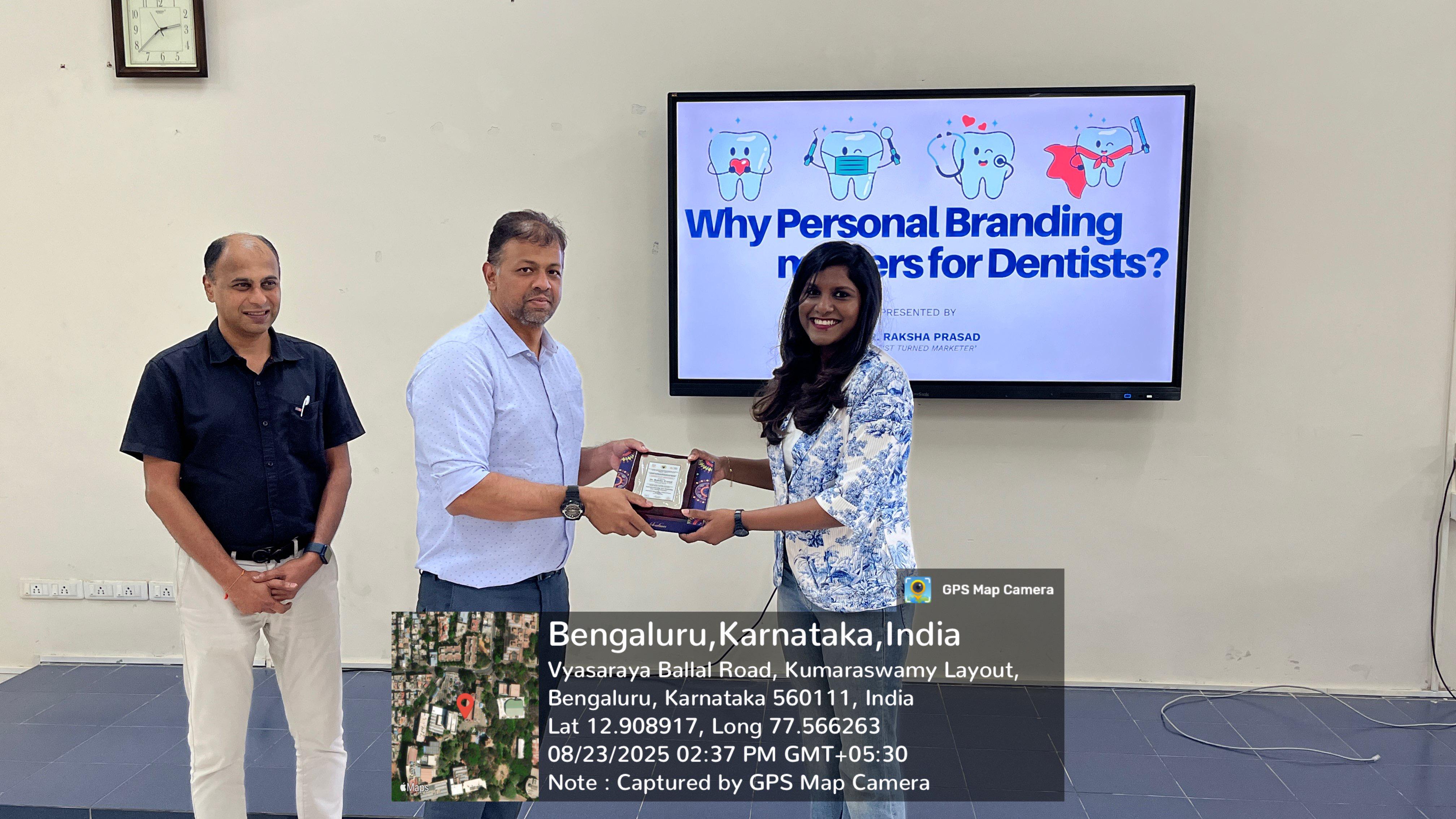 The Alumni Knowledge Exchange program in association with Career Guidance & Placements Committee of DSCDS, conducted a program on “Entrepreneurship And Marketing Your Dental Practice” by our Alumni of 2014-2020 Batch- Dr. Raksha Prasad which started at 2:30 pm on 23/08/2025. Dr Shreyasee Maity along with our Vice Principal Dr. Avinash J & Our Associate Dean of UG Studies Dr. Krishnanand introduced the speaker and welcomed the gathering.