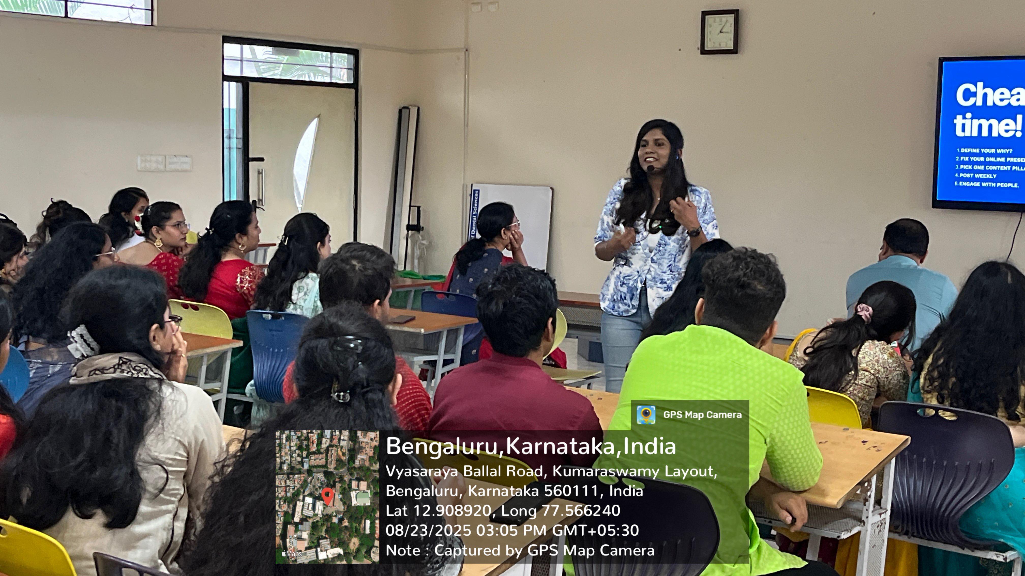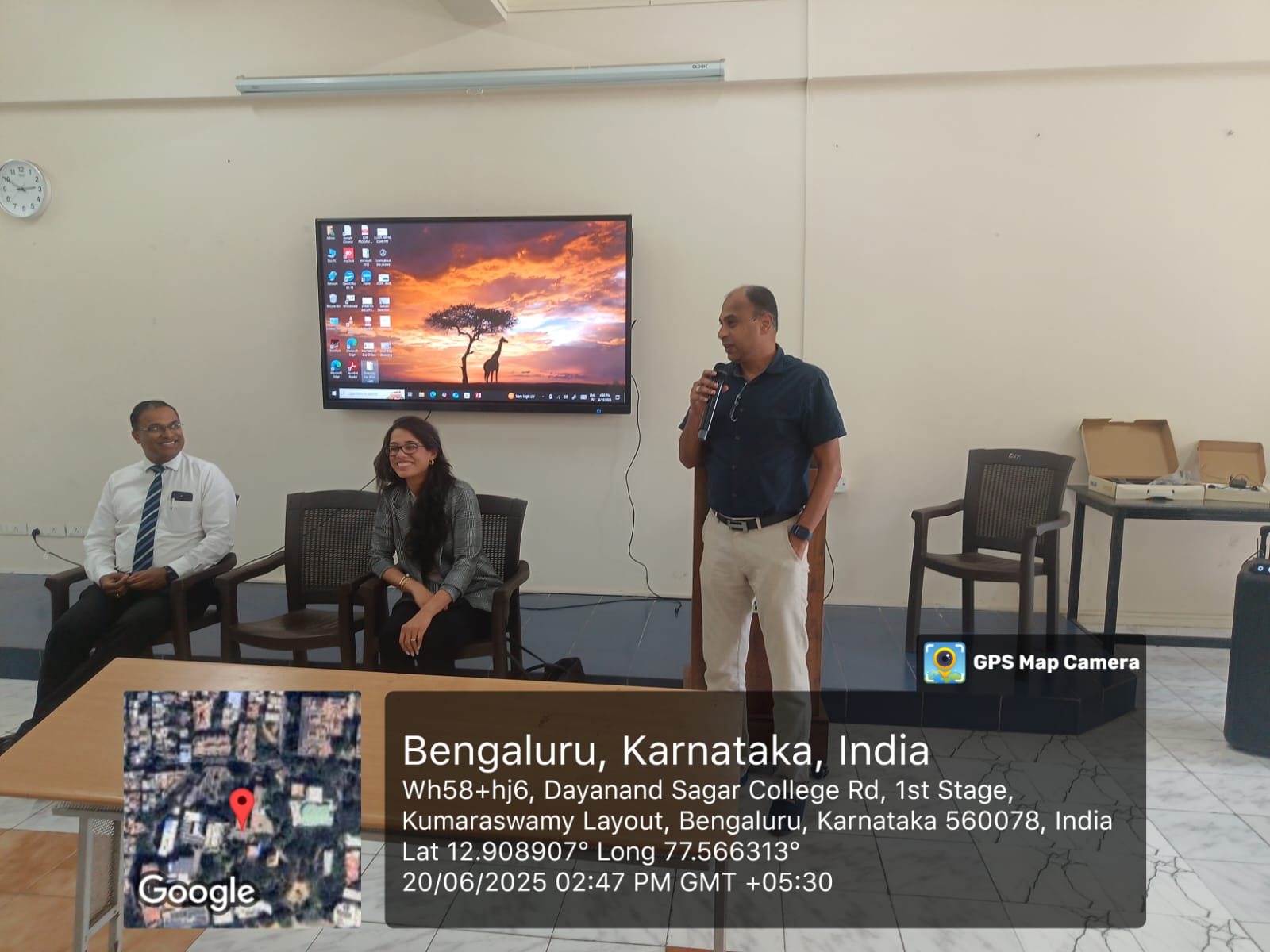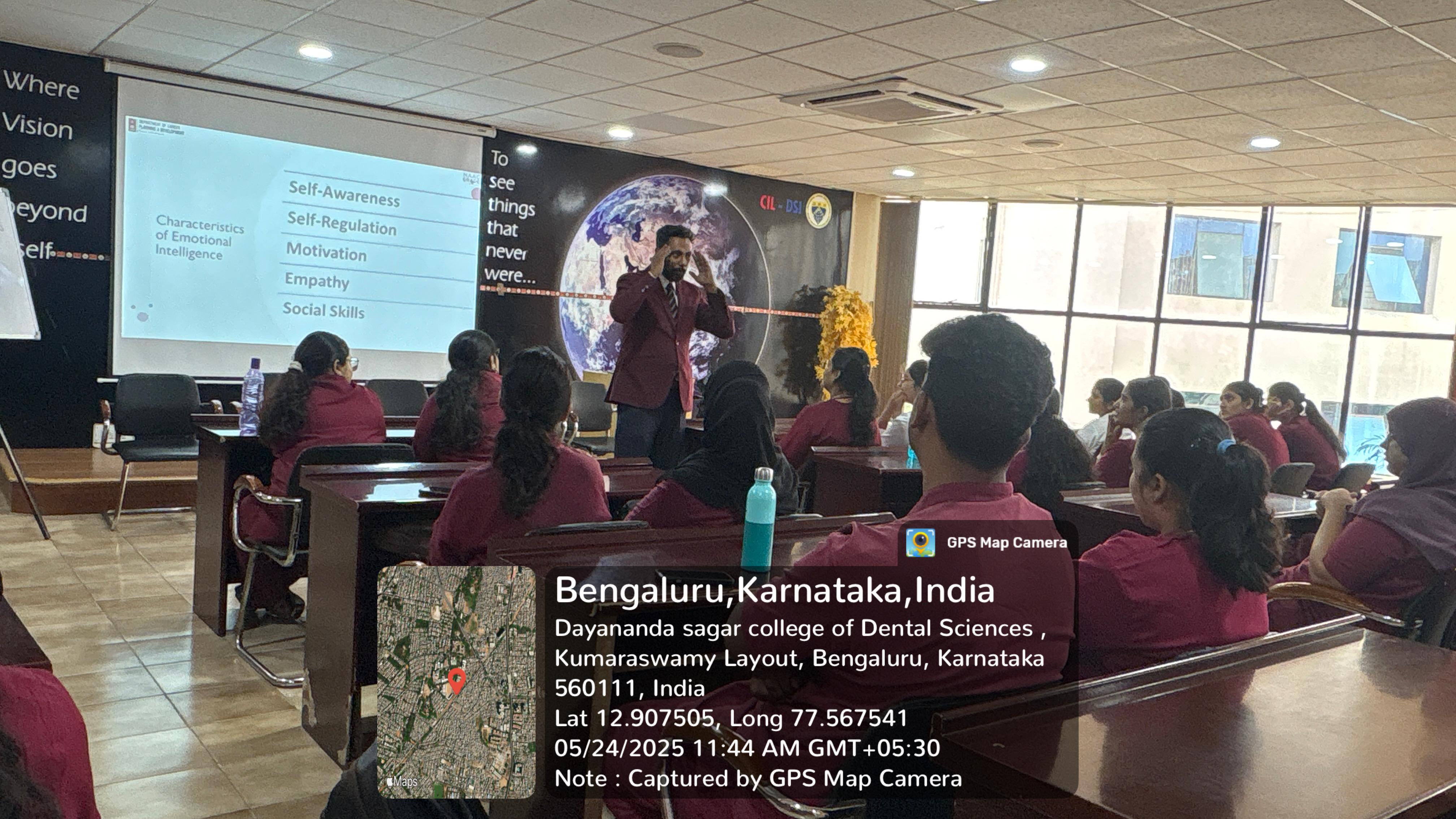 The Alumni Knowledge Exchange program in association with Career Guidance & Placements Committee of DSCDS, conducted a program on “Entrepreneurship And Marketing Your Dental Practice” by our Alumni of 2014-2020 Batch- Dr. Raksha Prasad which started at 2:30 pm on 23/08/2025. Dr Shreyasee Maity along with our Vice Principal Dr. Avinash J & Our Associate Dean of UG Studies Dr. Krishnanand introduced the speaker and welcomed the gathering.