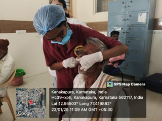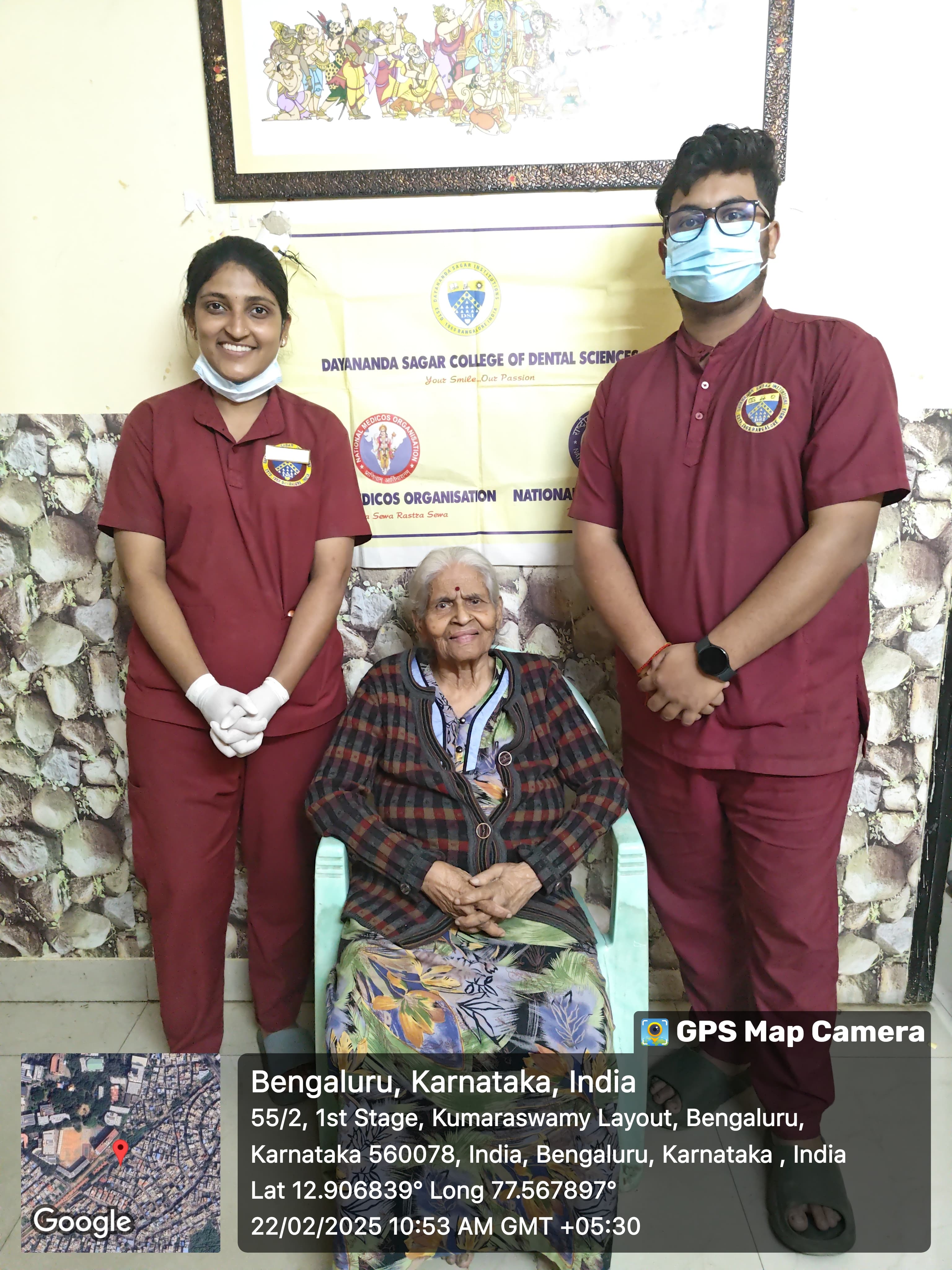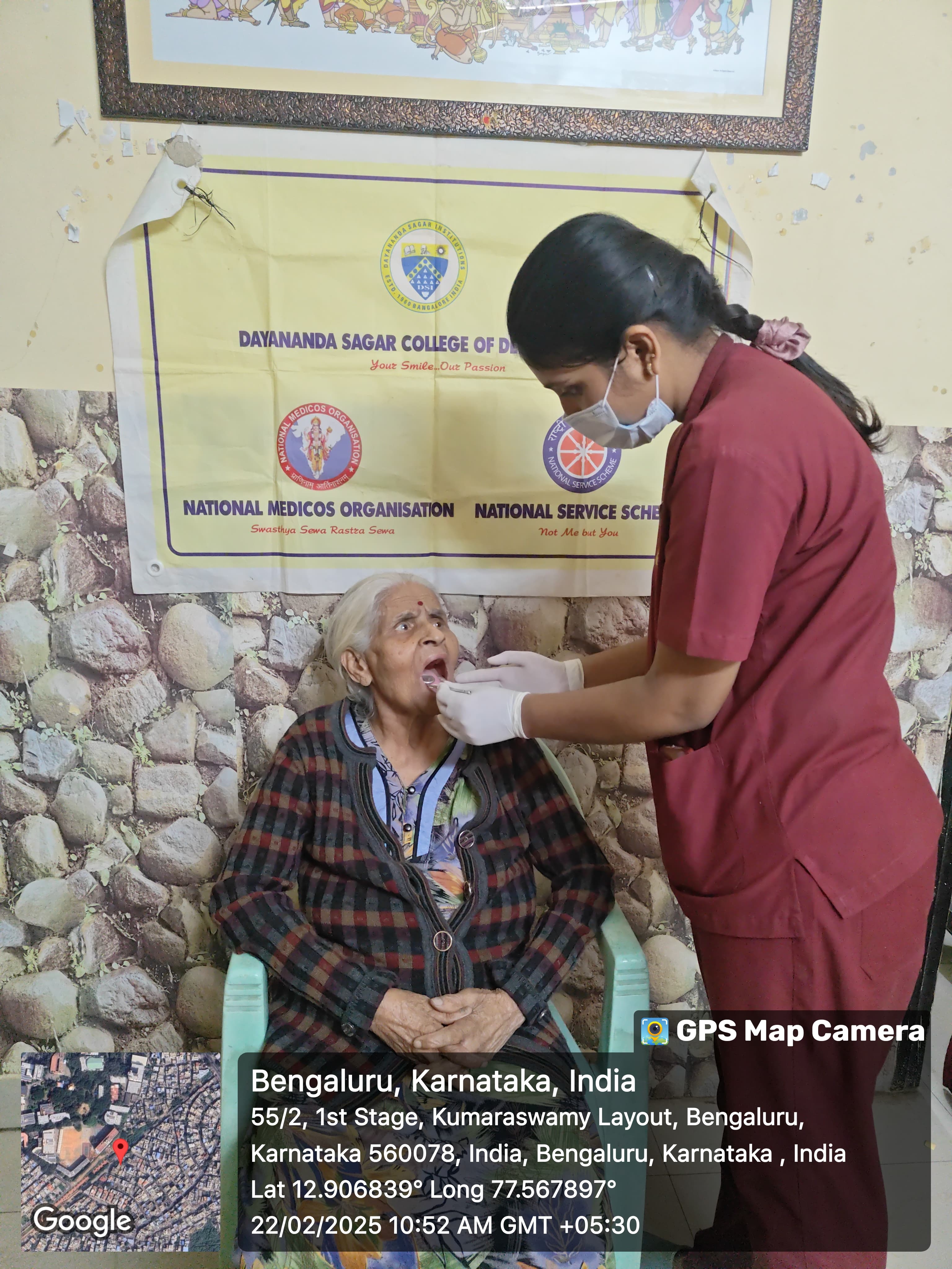 An outreach dental screening program was organized at Sri Sai Dwarakamayee Old Age Home, Nandi hills, approximately 32 kms from college. A team of dental doctors from Dayananda Sagar College of Dental Sciences headed by Dr Nayana , Senior Lecturer, Department of Public Health Dentistry, Dr Archana , Professor, Department of Periodontics, PG and Interns participated in the program. The dental team started from college at 7:30am in the fully equipped Mobile Dental Unit/Bus and reached the camp site by 10:00am. Breakfast was served by the organizers at the camp site. The camp started at 10:30am and went on till 02:30pm. The treatments included extraction of teeth, scaling and restoration of teeth. After lunch the team left the camp site by 03.00pm and reached the college by 05:15pm.