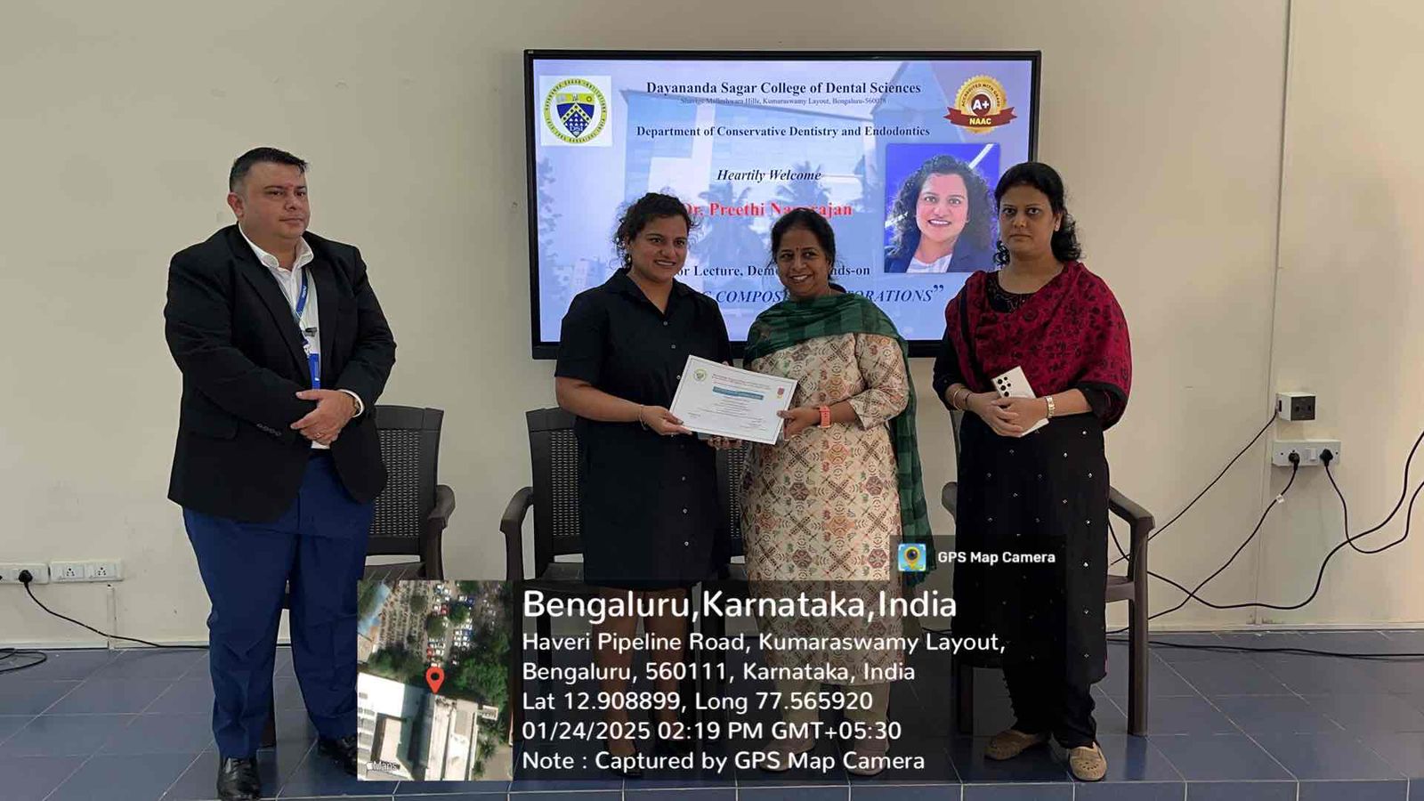 Department of Conservative Dentistry and Endodontics conducted lecture, Demo and hands-on workshop on Dental Photography and Documentation at CD Sagar auditorium and seminar hall, Department of orthodontia from 20-12-2021 to 23-12-2021. The program was attended by 80 delegates who had earlier registered for the program which included interns, PGs and staff