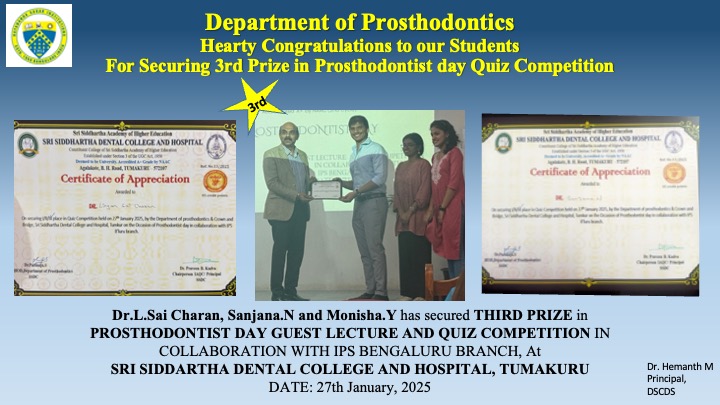 | 3 | Ishani Das | III BDS | Third Prize | Botox In Dentistry | Dr.Vidya MA, Dr. Krishnanand PS |