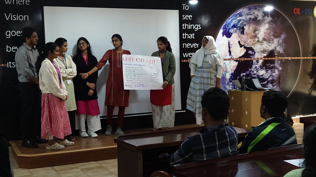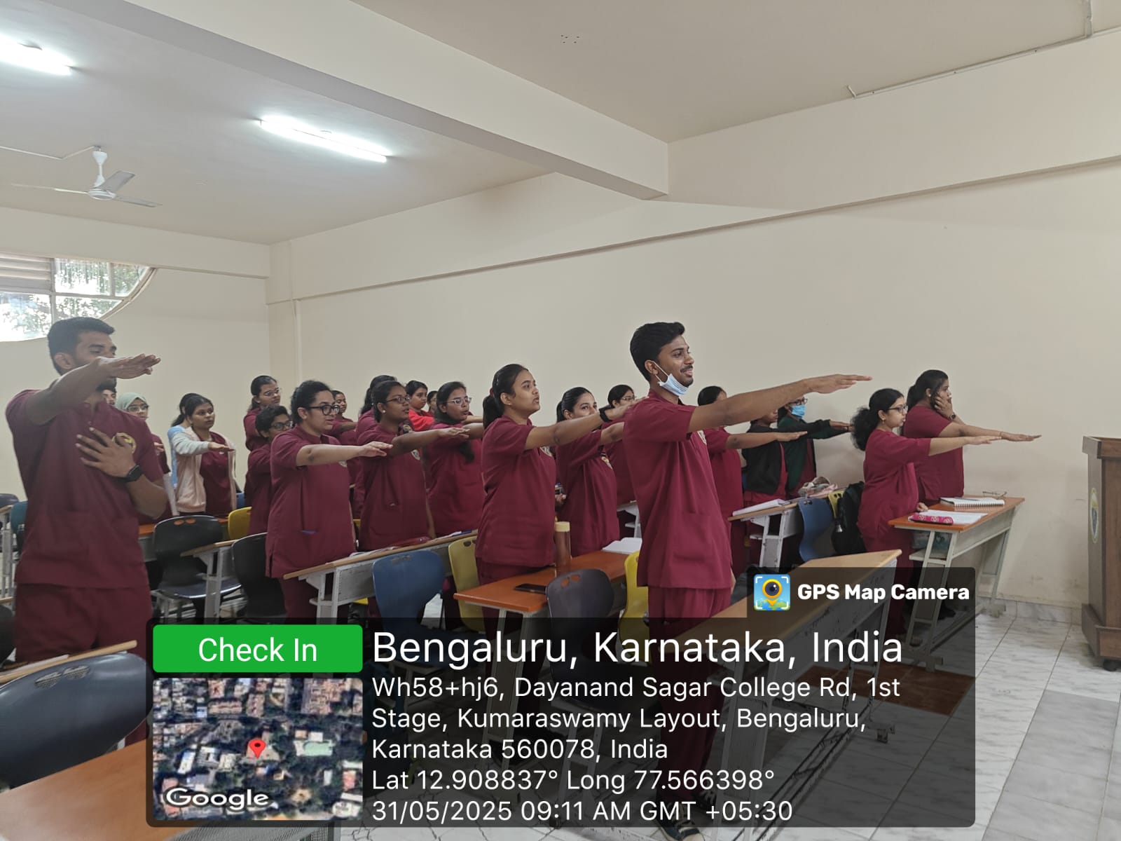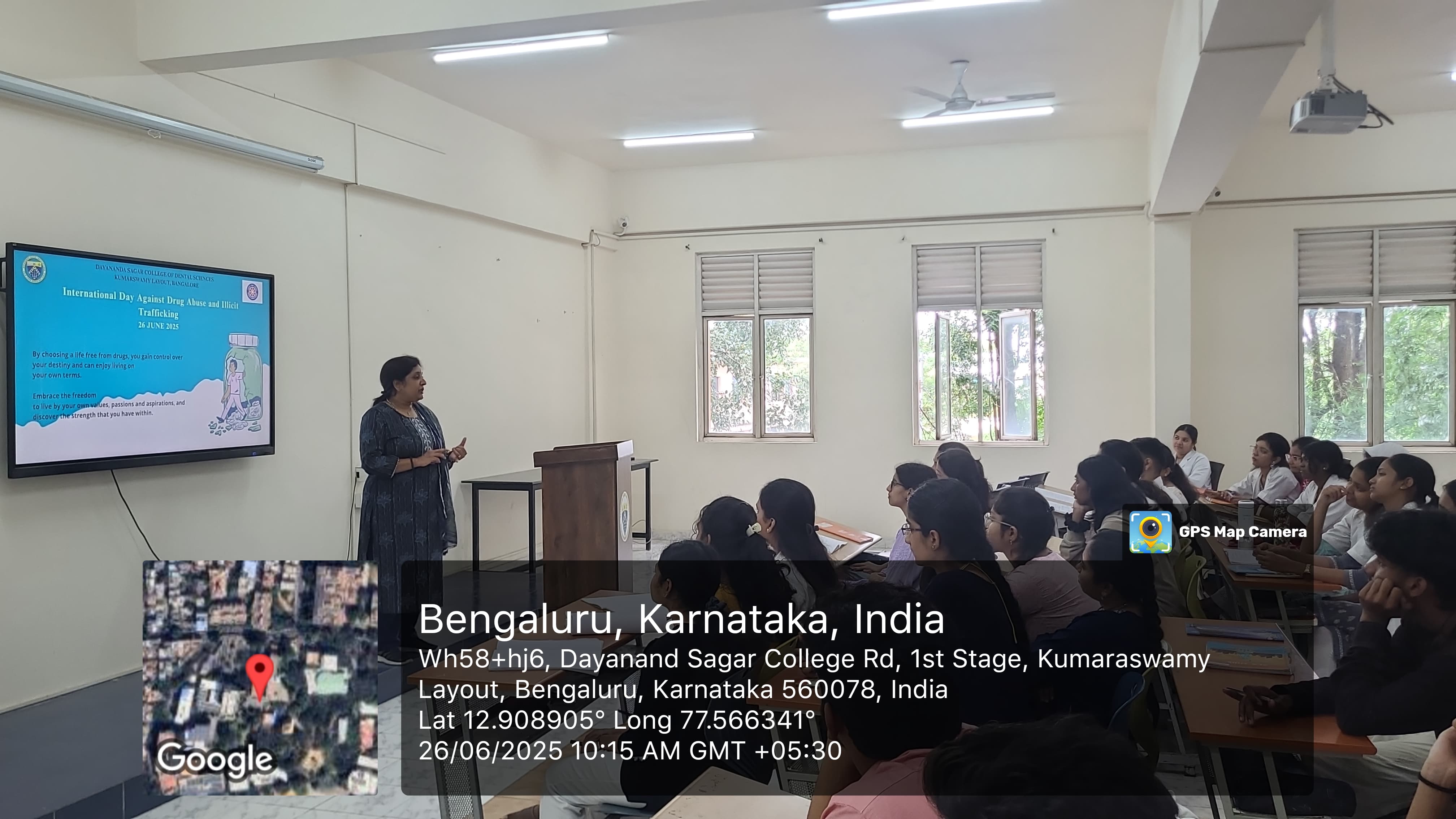 In a symbolic and heartfelt gesture, students collectively took the “Say No to Drugs” pledge, led by Dr. Nayana M, NSS Program Officer at DSCDS. This unified stand reinforced the commitment to building a drug-free society and upholding moral responsibility.