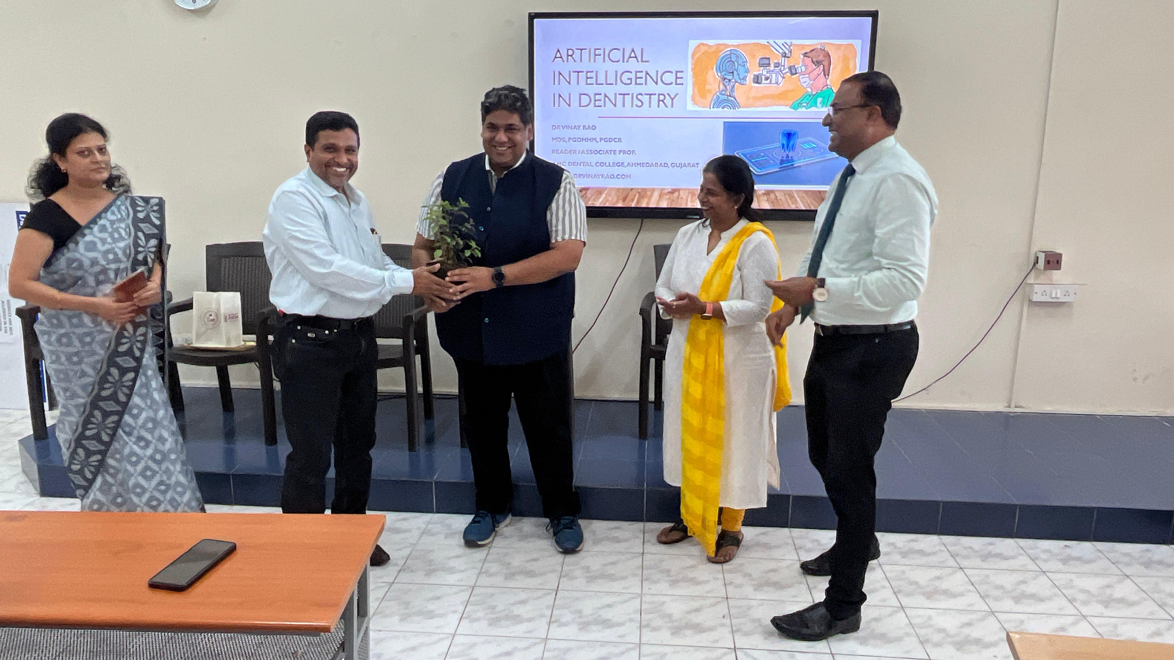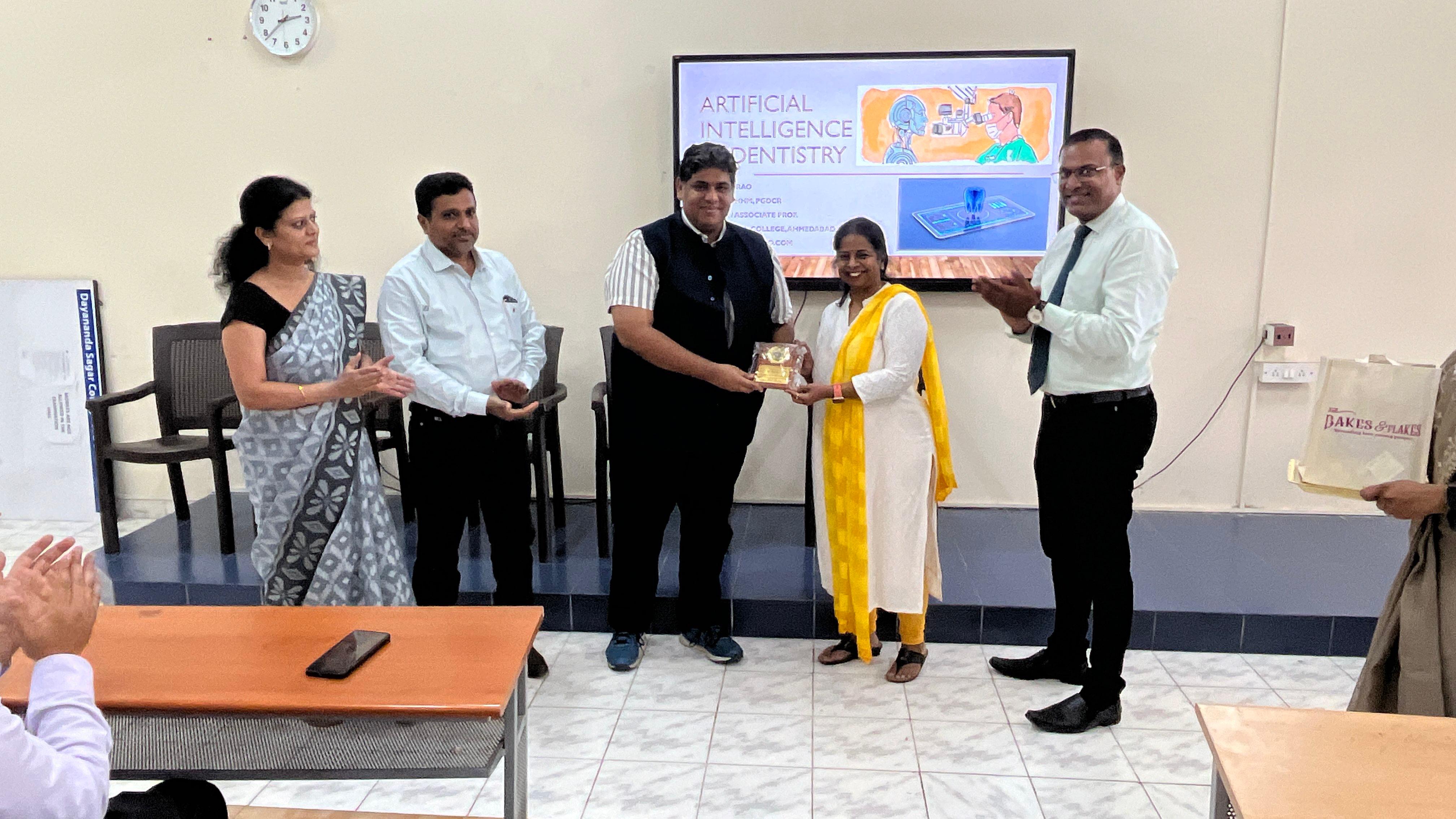 Dr Parth Pratik explained about the career prospects after dentistry with emphasis on digital dentistry practice. He went on to highlight the importance of aesthetics and how knowing it would make us “stand out in the market” as 3D treatment planning, dental tourism related Job opportunities are on the rise. The program ended with an interactive session between the speaker and our interns and faculty present, wherein the speaker cleared all the queries regarding the digital dentistry , its softwares and the various courses available to learn in detail about them.