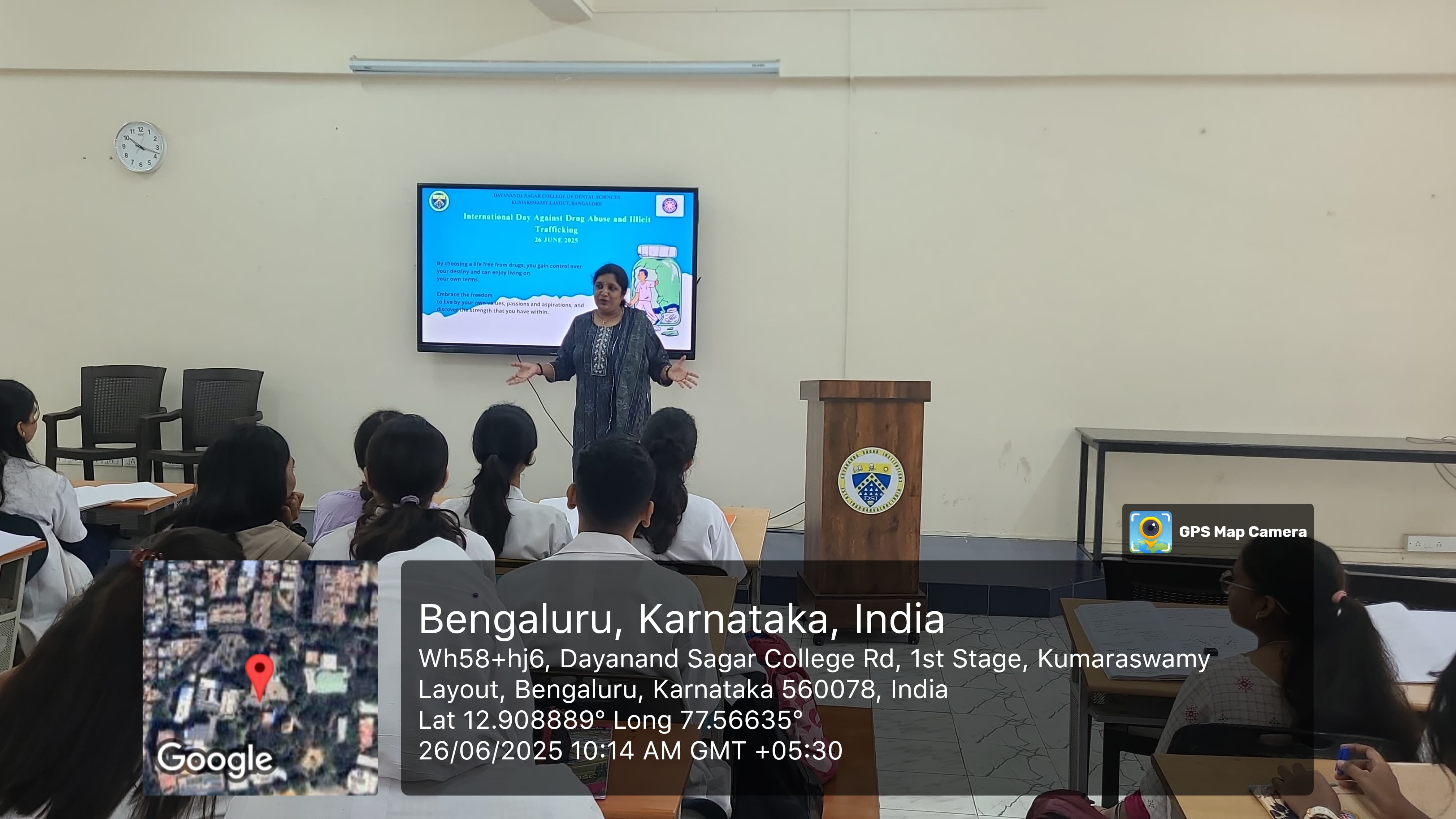 To mark the occasion, an impactful awareness speech was delivered by Dr. Sangeetha R, Professor in the Department of Oral and Maxillofacial Pathology. Her address emphasized the critical importance of making informed choices and the far-reaching benefits of saying no to drugs. She inspired students to envision a future that is brighter, healthier, and free from the shackles of substance abuse.