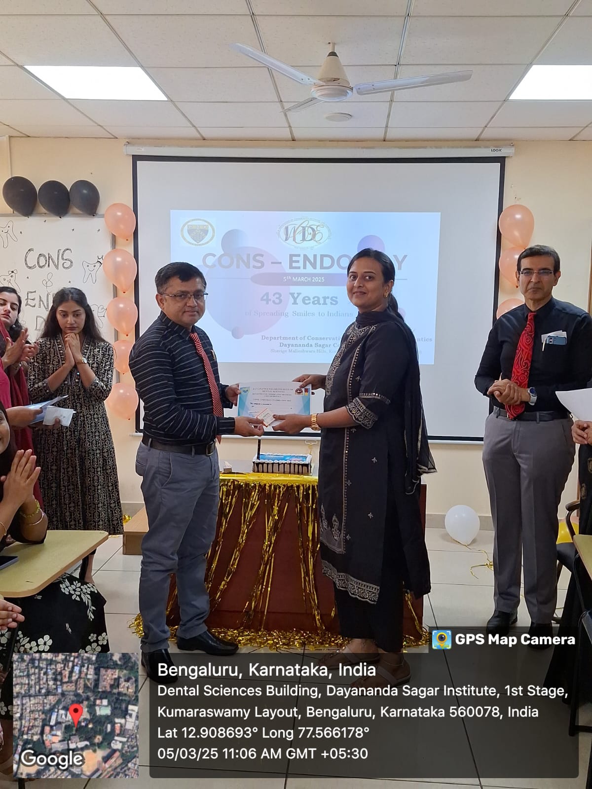 Visit of Prof. Dr Dibyendu Mazumder President – DCIThe President of the Dental Council of India, Prof. Dr. Dibyendu Mazumder was the chief guest for the Post Graduate student's Scientific program in the subject of Conservative Dentistry and Endodontics. Honorable Dr. D Hemachandra Sagar, Sri. Galiswamy, Dr. Rajeev Shetty (Former DME, Father of Conservative & Endodontics in Karnataka) were the guests of honor for this program.