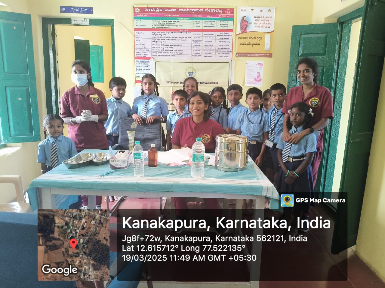 The “National Tooth brushing day” as prescribed by Dental Council of India is celebrated in the month of November every year. The Department of Public Health Dentistry, Dayananda Sagar College of Dental Sciences conducted a dental health education camp including the monitored tooth brushing program. A team of faculty and students of the department organized and conducted the monitored tooth brushing program on 14-11-18 at Dayananda Sagar Kannada Medium School, Yelachenahalli, Bangalore. This school majorly caters to the students coming from lower socio economic strata in and around Yelachenahalli.