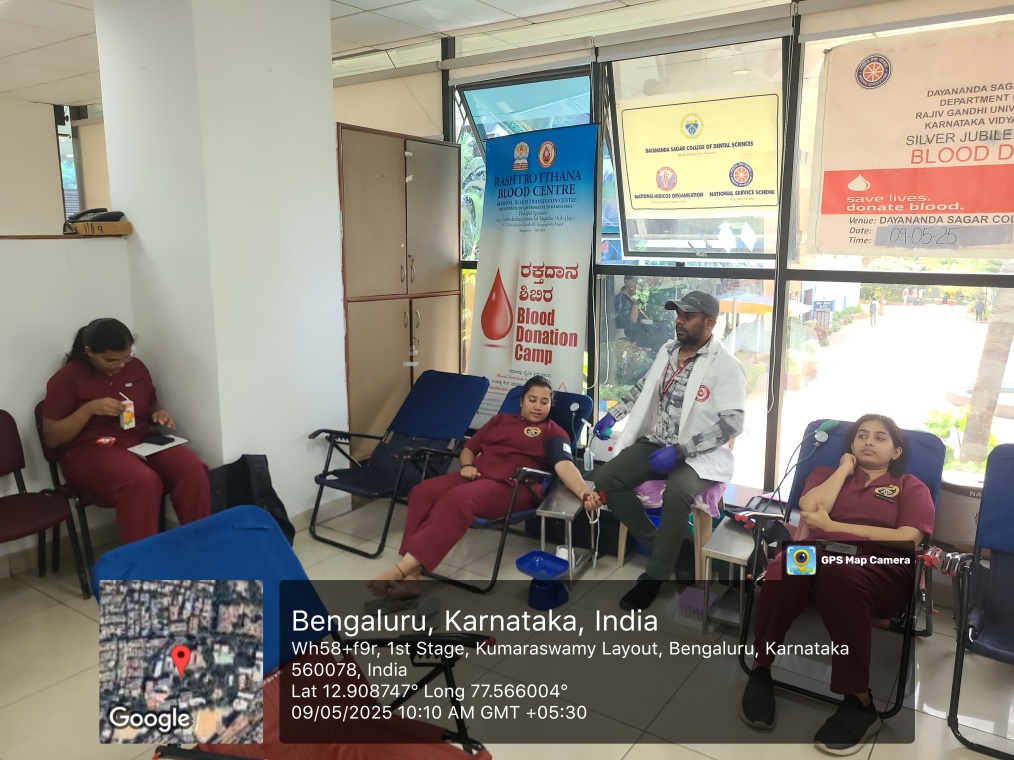 A mega blood donation camp was conducted on the 15th of September 2019 in Dayananda Sagar College of Dental Sciences as part of the NSS activity of the college. The program was in commemoration of the silver jubilee celebrations of our dental college. The camp was organized in association with Karnataka VidhyarthiKoota(KVK), an NGO associated with our dental college and its outreach activities. A team of doctors and technicians from the Sanjay Gandhi Trauma Hospital Blood Bank and Sagar Hospital blood bank were commissioned to do the needful. The programwas held at the Department of Oral and Maxillofacial Surgery, DSCDS and started off at 9.30 am and continued till 2.30pm. There were about 150 volunteers who registered for blood donation andwe were successfully able to collect 80 pints of blood from the enthusiastic volunteers.