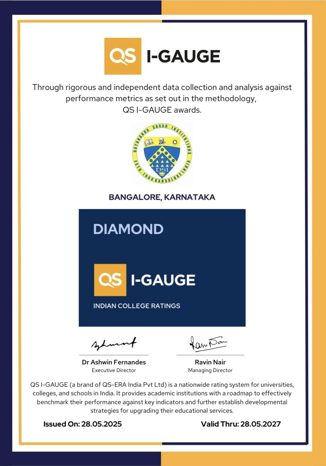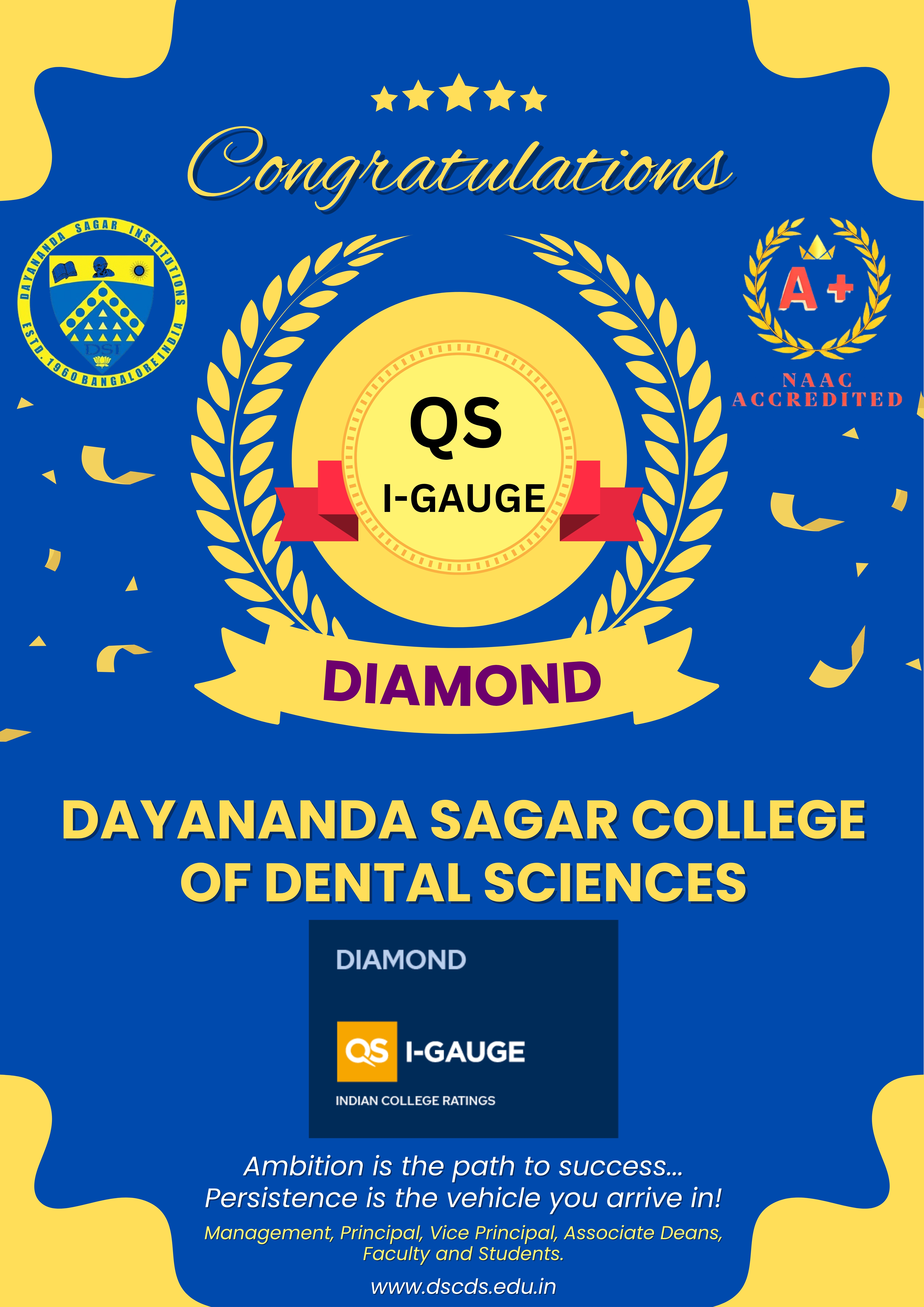 We're thrilled to announce that Dayananda Sagar College of Dental Sciences has achieved the prestigious QS I-GAUGE Ranking of DIAMOND!